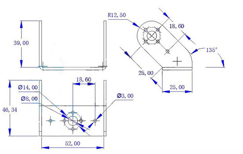 Название: Наклонный u-образный серводвигатель Материал: 2 мм Жесткая алюминиевая пластина Обработка поверхности: пескоструйное окисление Размер: 56*25*41 мм Цвет: черный Вес: 23 г Подходит для: роботов/панорамирования и наклона