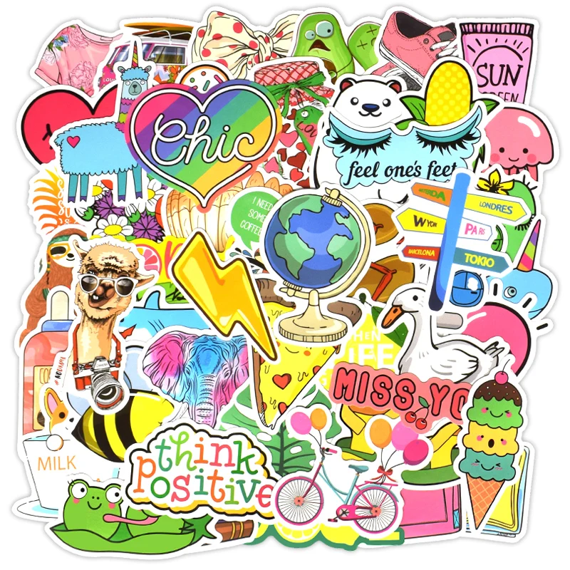 200 шт., Мультяшные летние/Для девочек/животных, наклейки, упаковка, виниловые водонепроницаемые бутылки для ноутбука, модные наклейки, наклейки, патчи-граффити для детей