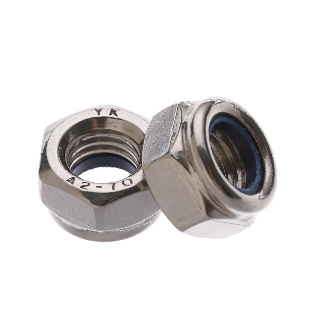 Фурнитура из нержавеющей стали, самоблокирующаяся гайка, нейлоновая гайка с замком, нейлоновая Шестигранная гайка M4 M5 M6 M8 M10 M12