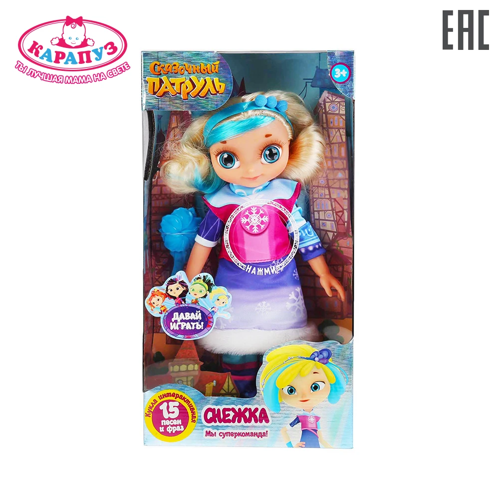 Интерактивная кукла «Снежка мэджик» ТМ «Карапуз» – озвученная игрушка, которая поёт и говорит 15 песен и фраз из мультфильма «Сказочный патруль».