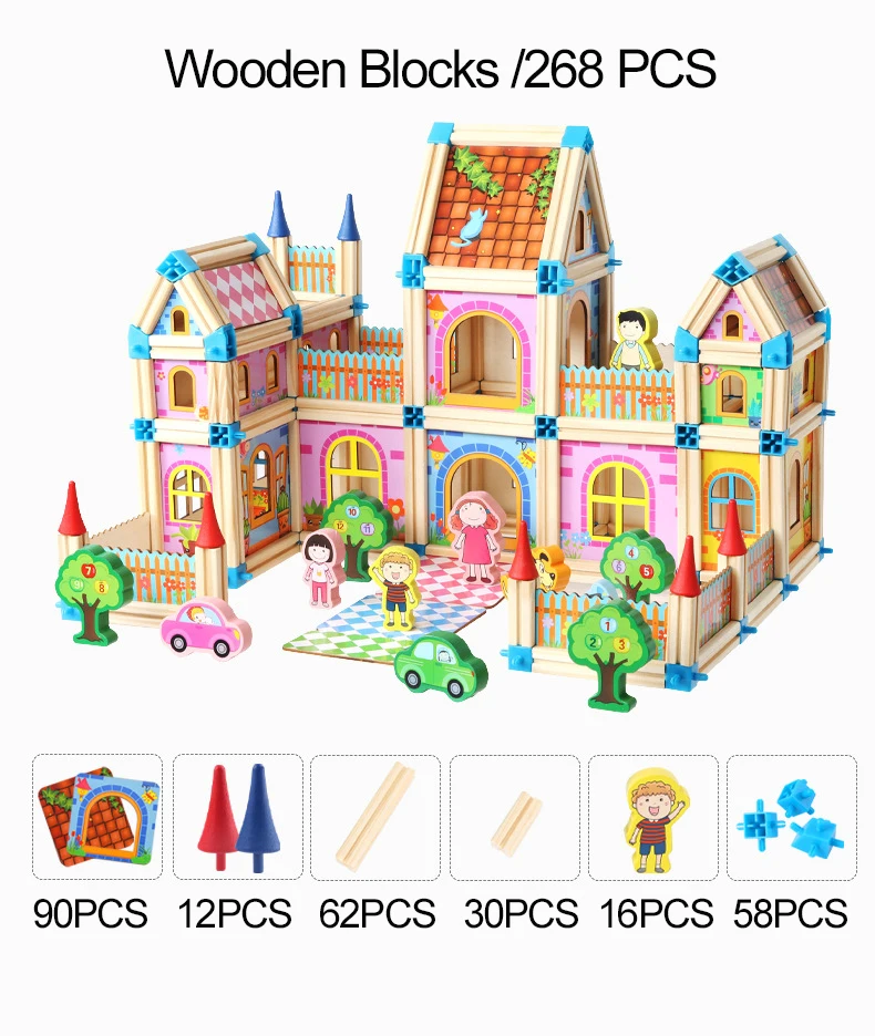 Набор деревянных блоков: 128 шт/268 шт А. 128 шт. аксессуары: настенная доска * 36 шт., длинная древесина * 35 шт., короткая древесина * 18 шт., кукла * 5 шт., красная Домашняя Плита * 3, синяя Домашняя Плита * 3, интерфейс * 28 Аксессуары: настенная доска * 90 шт., длинная древесина * 62 шт., короткая древесина * 30 шт., кукла * 16 шт., красная Домашняя Плита * 6, синяя Домашняя Плита * 6, интерфейс * 58 Для пульта дистанционного управления • Товары не включают розничную упаковку • Размер может быть неточным на 2 см/1 дюйм из-за ручного измерения • Содержит мелкие детали, не предназначенные для детей в возрасте до 3 лет.