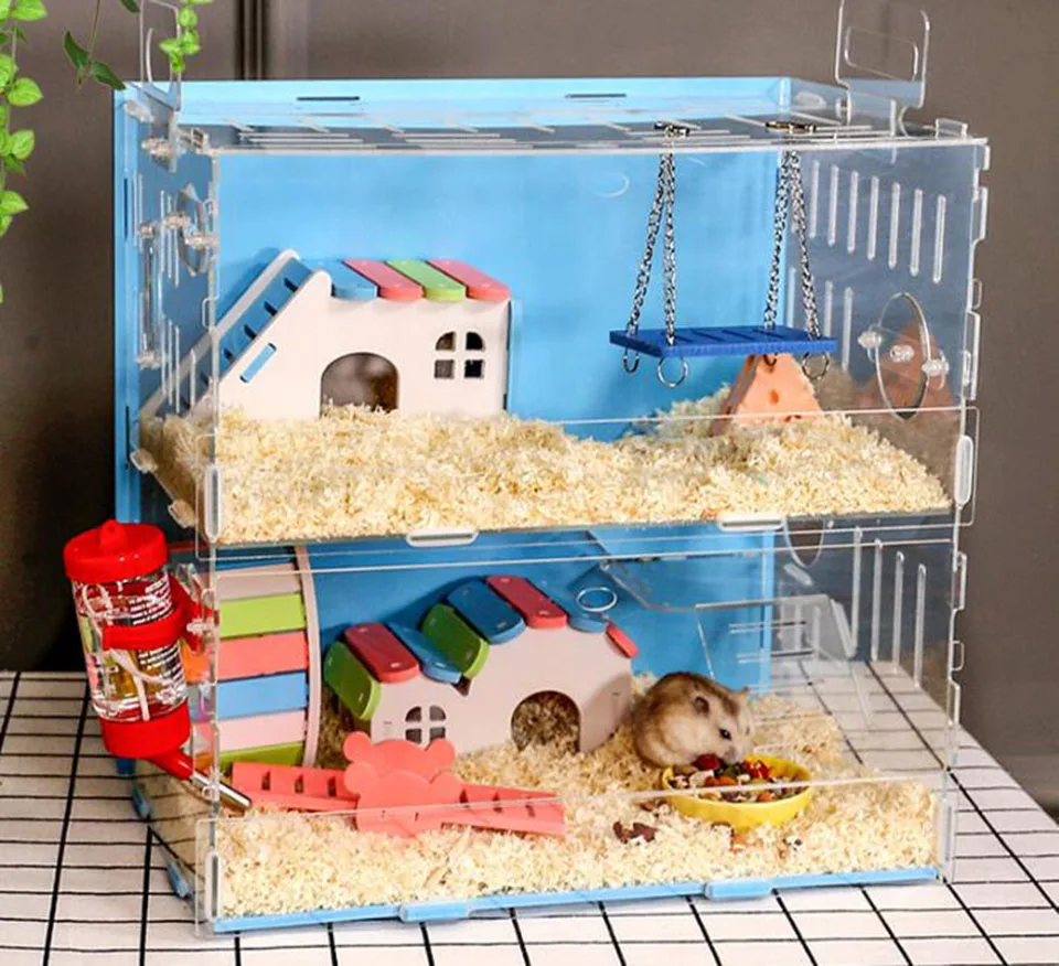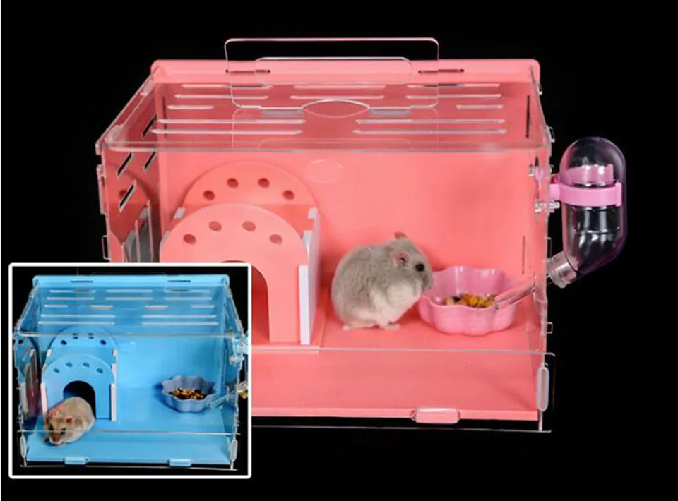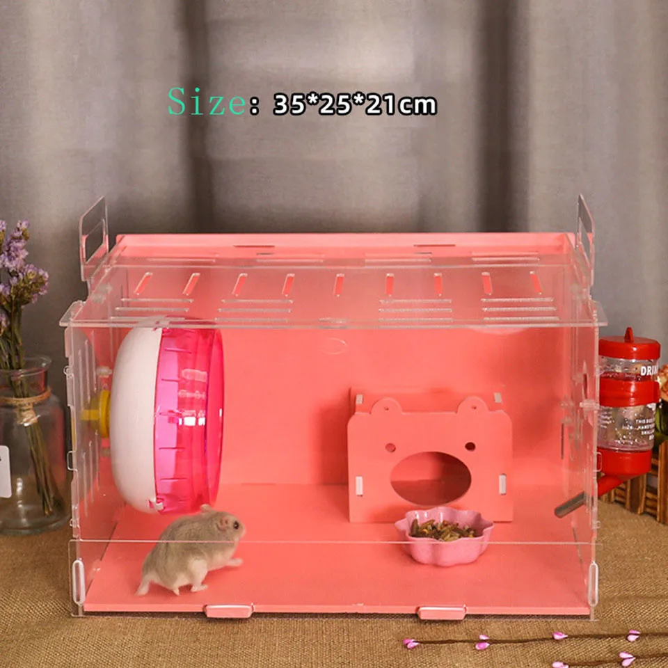 Акриловая клетка для хомяка, гнездо Золотого медведя, вилла, одноэтажная посылка Цвет: синий, розовый Размер: как на изображении Материал: акрил Использование: хомяк, ящик для разведения моего соседа Тоторо, декоративная клетка Упаковка: картонная упаковка Примечание: необходимо собрать самостоятельно