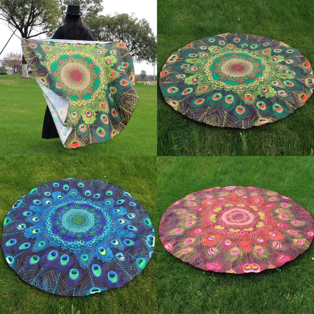 Круглый принт хиппи гобелен пляжный, пикник пледы Йога Коврик Полотенце покрывало