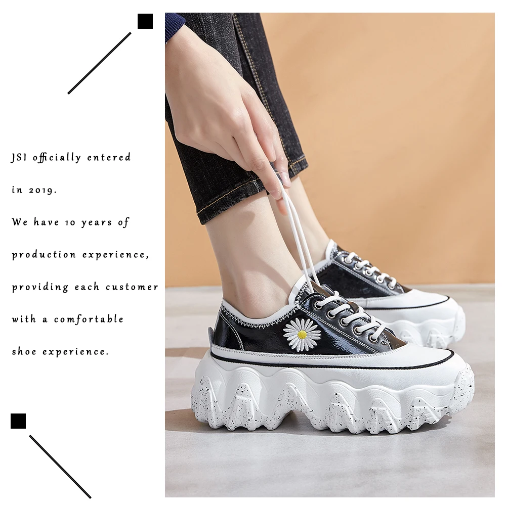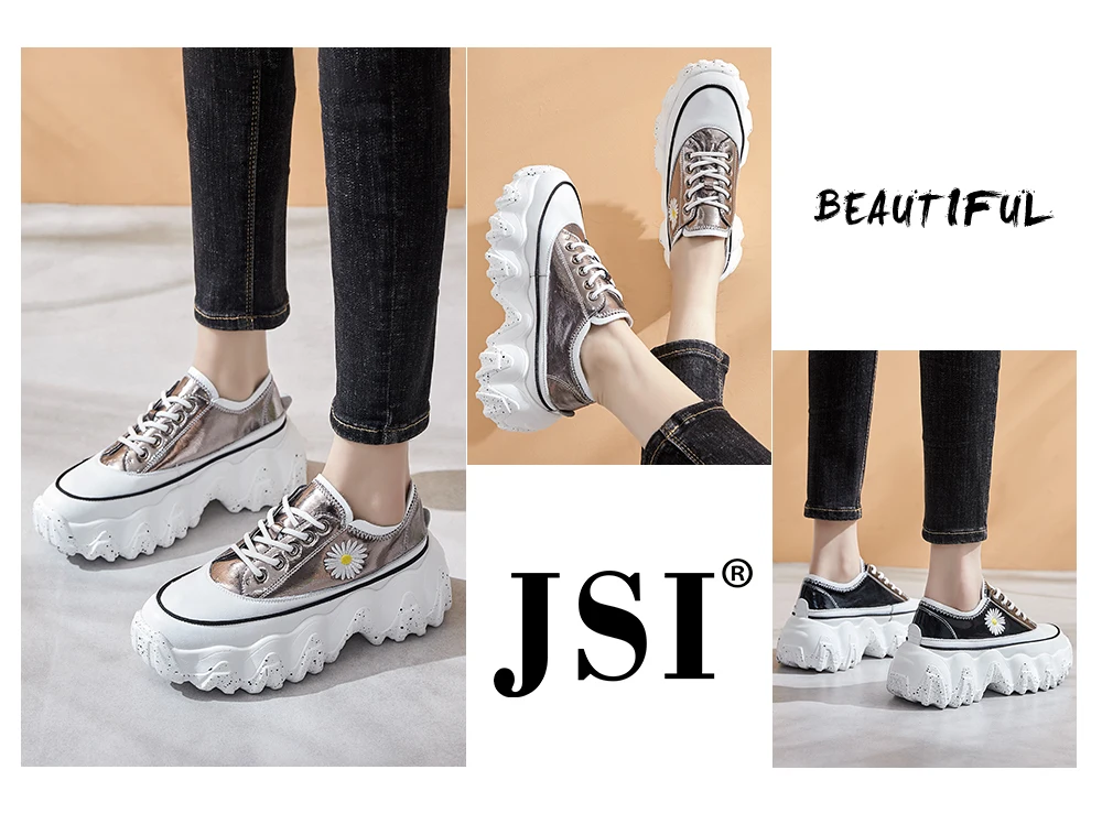 JSI/Женская обувь на плоской платформе, украшенная цветами; Высококачественная обувь из коровьей кожи на шнуровке; Нескользящая женская обувь на плоской подошве; JO443