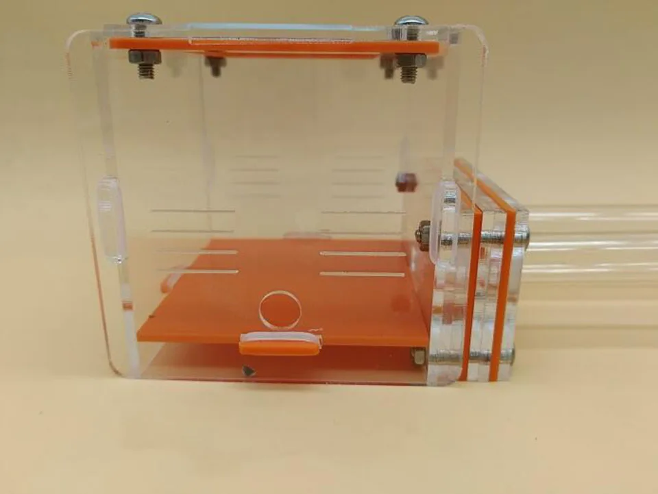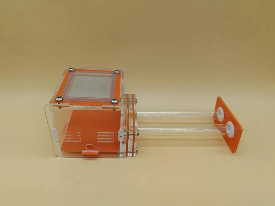 Это двойное гнездо для пробирки муравьев Цвет: как показано Материал: акрил Размер акрила: длина 100 * ширина 90 * высота 85 Характеристики пробирки: 15*150 мм Упаковка: картонная упаковка