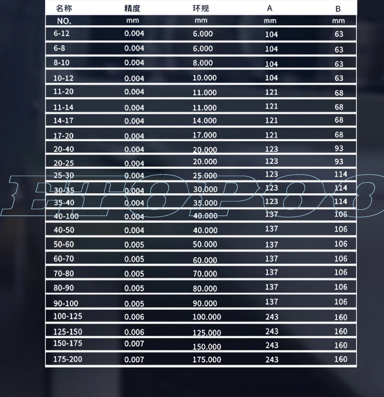 for blind hole or through hole measuring. with set ring (under 100mm) contact points can be either carbide or hardened steel