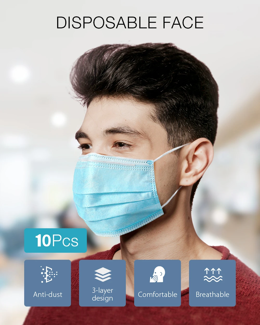 Этот товар включает в себя только 50 шт. одноразовые маски, состоит из 3 слоя нетканого материала, он безопасен для здоровья и безопасный для вас, чтобы использовать. Дышащий материал, который делает его полезным и модным. Специальный 3 слоя из нетканого материала, дизайн, обеспечивает некоторые меры защиты от пыли, автомобильный отходящий газ, пыльцу и т. Д. Эластичная петля уха позволяет легко снимать и надевать цепочку и не давит на уши. Идеально подходит для маникюрного салона или в любых других областях, где может потребоваться защита, например, самолета и т. Д.