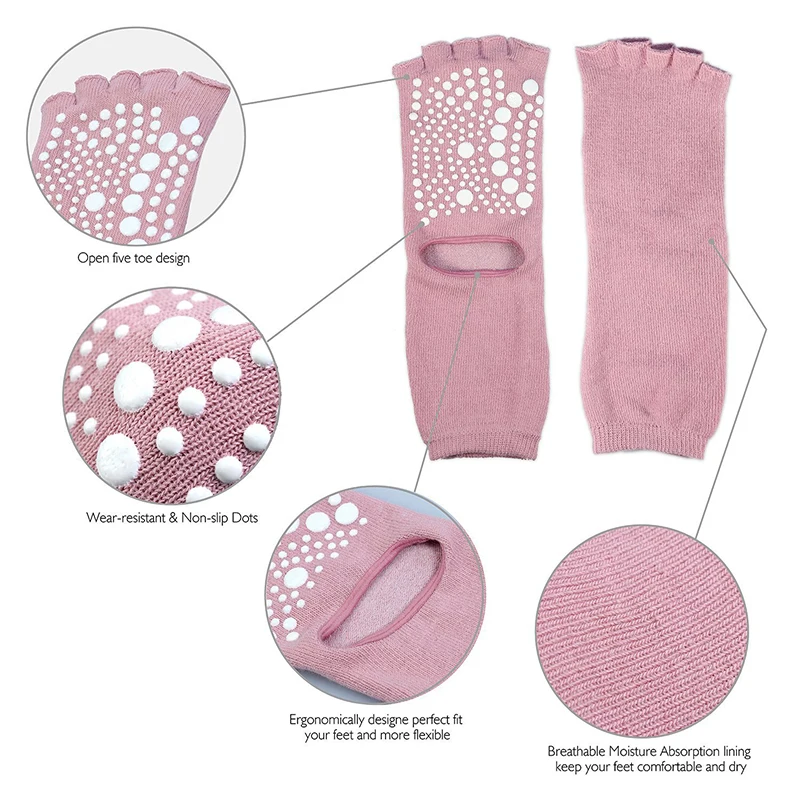 3 пары силиконовых нескользящих носков для йоги с пятью пальцами, носки для йоги с открытым носком на каблуке, хлопковые нескользящие носки для кроссовок, впитывающие пот