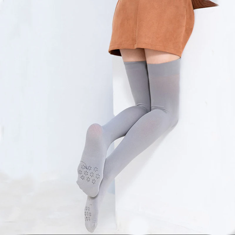 Женские чулки до бедра, одноцветные, ребристые манжеты, Нескользящие, длинные чулки, женские, для улицы, для йоги, спортивный жесткий, гладкие, высокие, эластичные носки