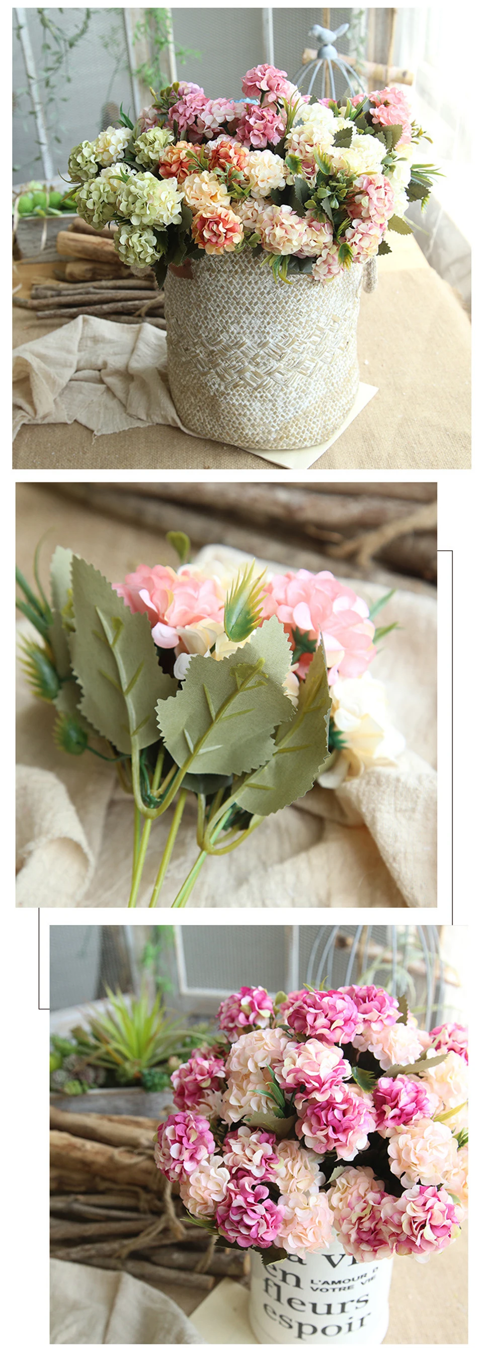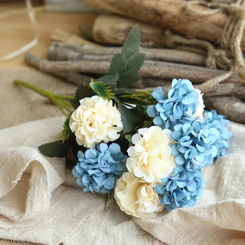 5 Head Hydrangea Artificial Flowers Fake Flower Bouquet For Wedding Party Home New Year Decoration Silk Flowers Home Decor