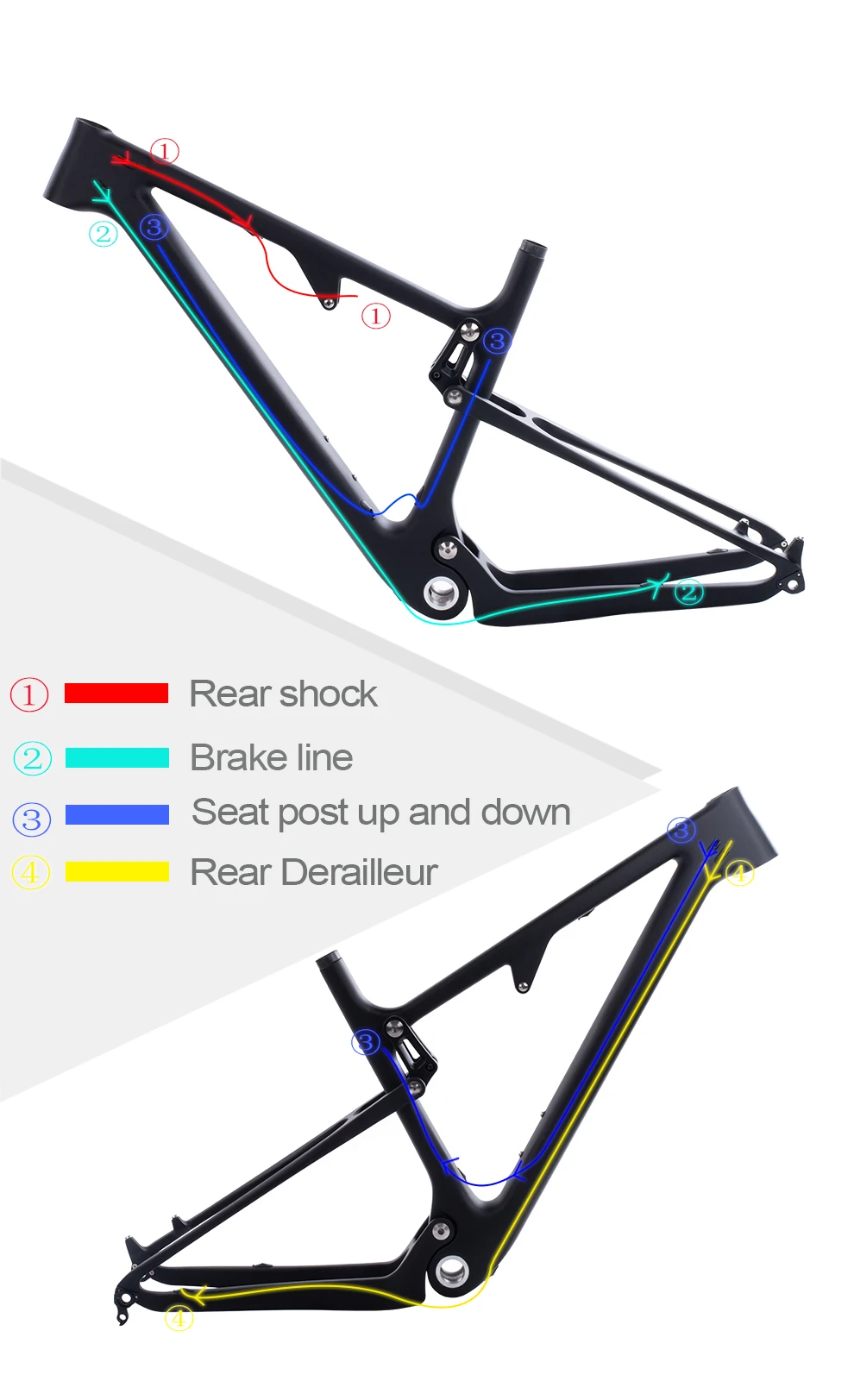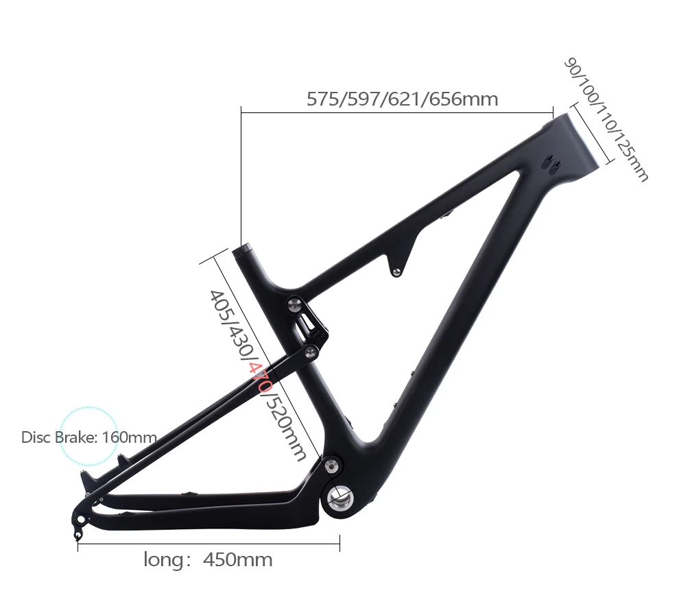 Материал: углерод Модель: BXT-MTB-077 Ткань: UD Размер: S/M/L/XL Перемещение рамы: 100 мм Размер колеса: 29er * 2,3 Задний амортизатор CC : 165*38 мм Тип тормоза: 160 мм дисковый тормоз Подходящий коленчатый набор: 32T-40T Вес: 2046,5 +/-50 г (для размера L) Нижний Кронштейн: BSA(73 мм) Задний дептор: 29er: 142*12 мм или 148*12 мм Трубка гарнитуры: 1 1/8-1 1/2, коническая Трубка сиденья: 31,6 мм Маршрутизация кабеля: Внутренний кабель