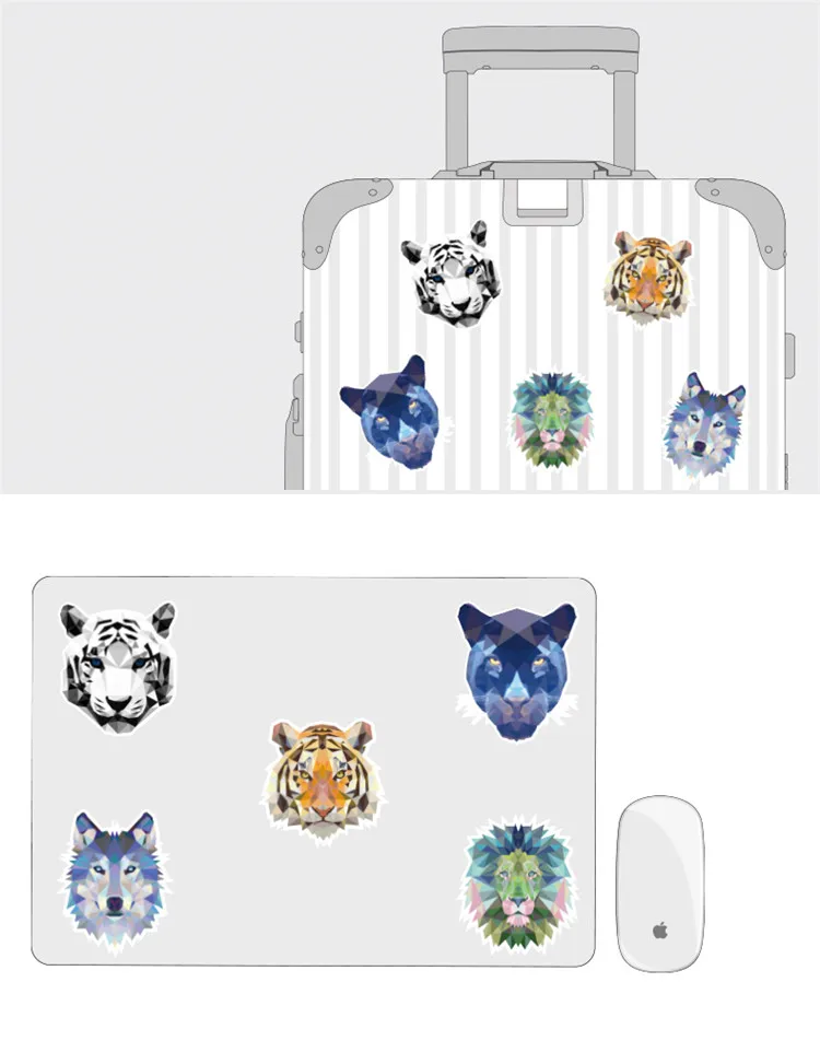 5 шт./компл., крутые животные, Мультяшные наклейки, тигр, Лев, волк, наклейки для мальчиков, украшение для чемодана, бутылки для ноутбука 7 ~ 10 см, Pegatinas