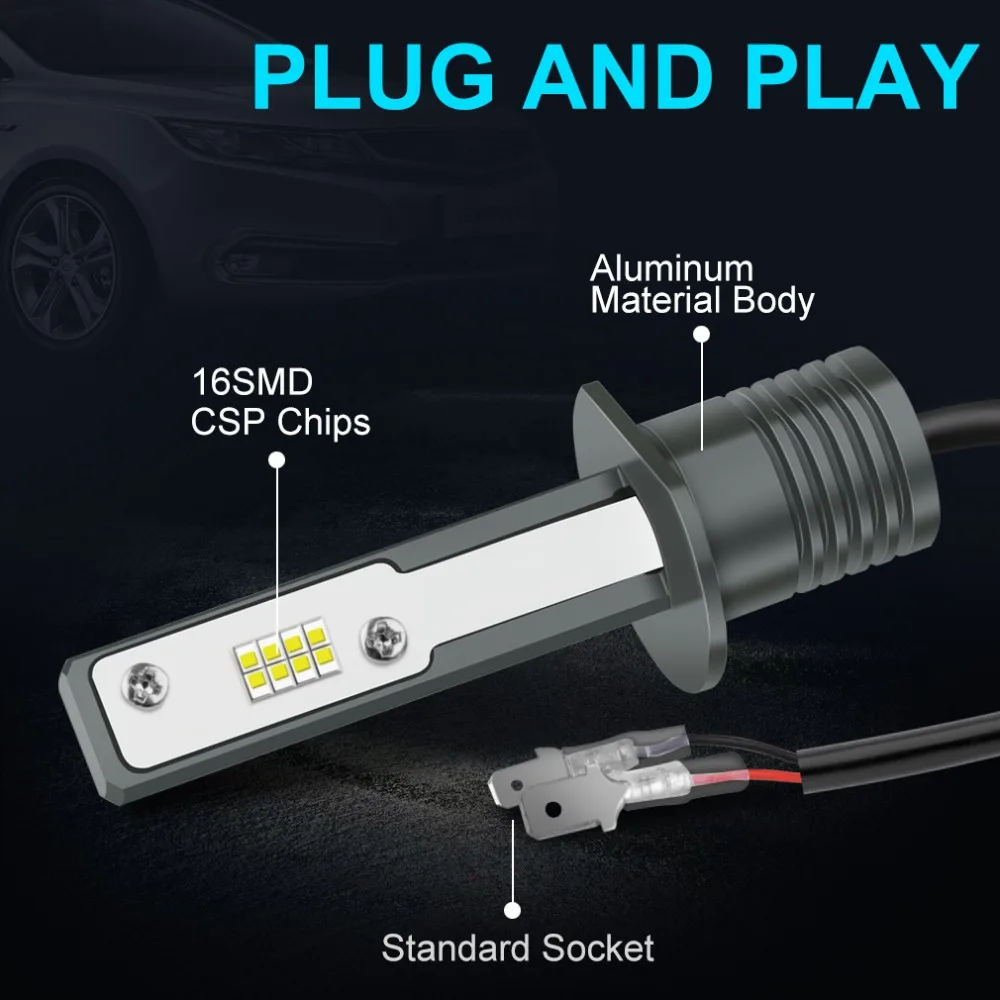 2 шт. авто лампа H1 H3 Светодиодная лампа супер яркая 16SMD автомобильные светодиоды с чипом CSP туман светильник, футболка с принтом "автомобиль" вождения Светильник лампы 4000LM 12V 24V 6000K головной светильник