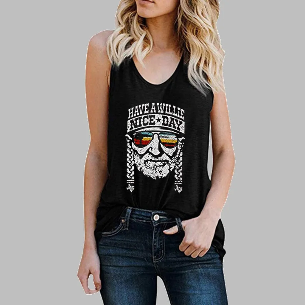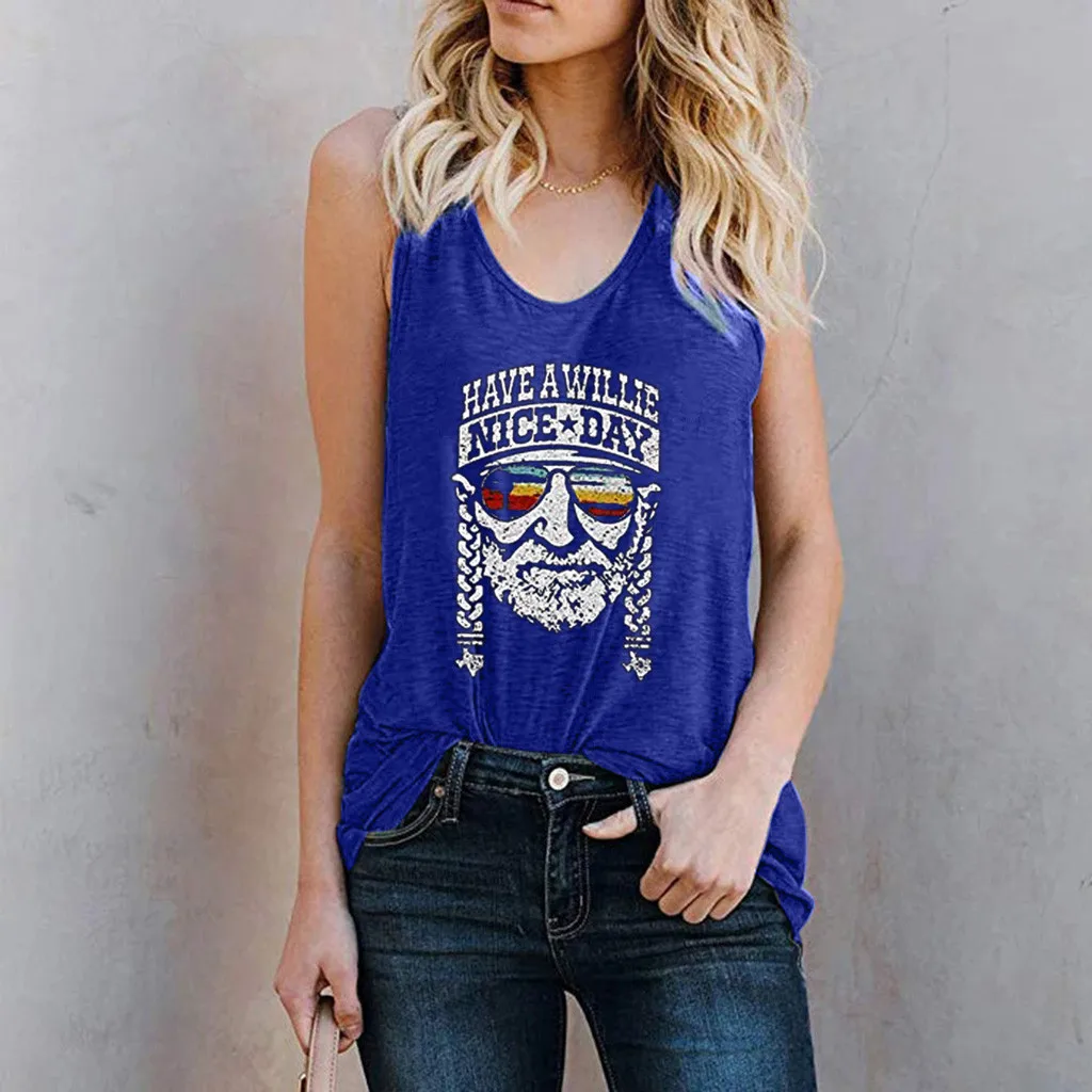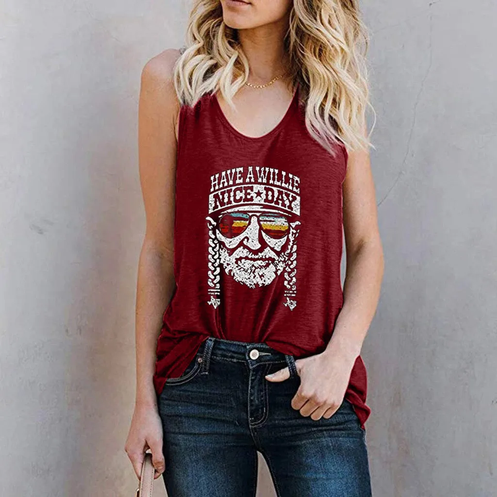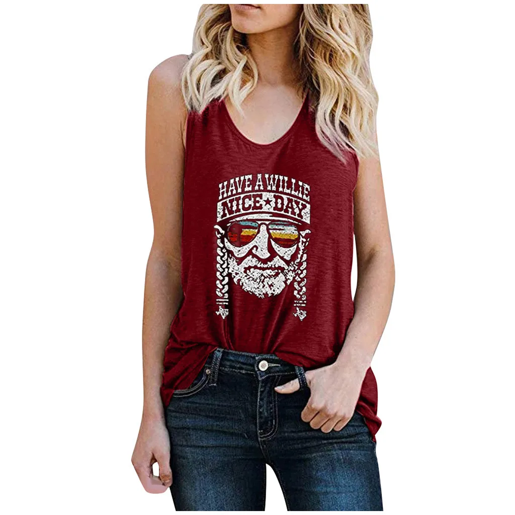 Женская мода Повседневная o-образным вырезом без рукавов принт буквы футболка майка Блузка жилет