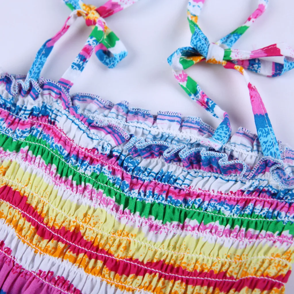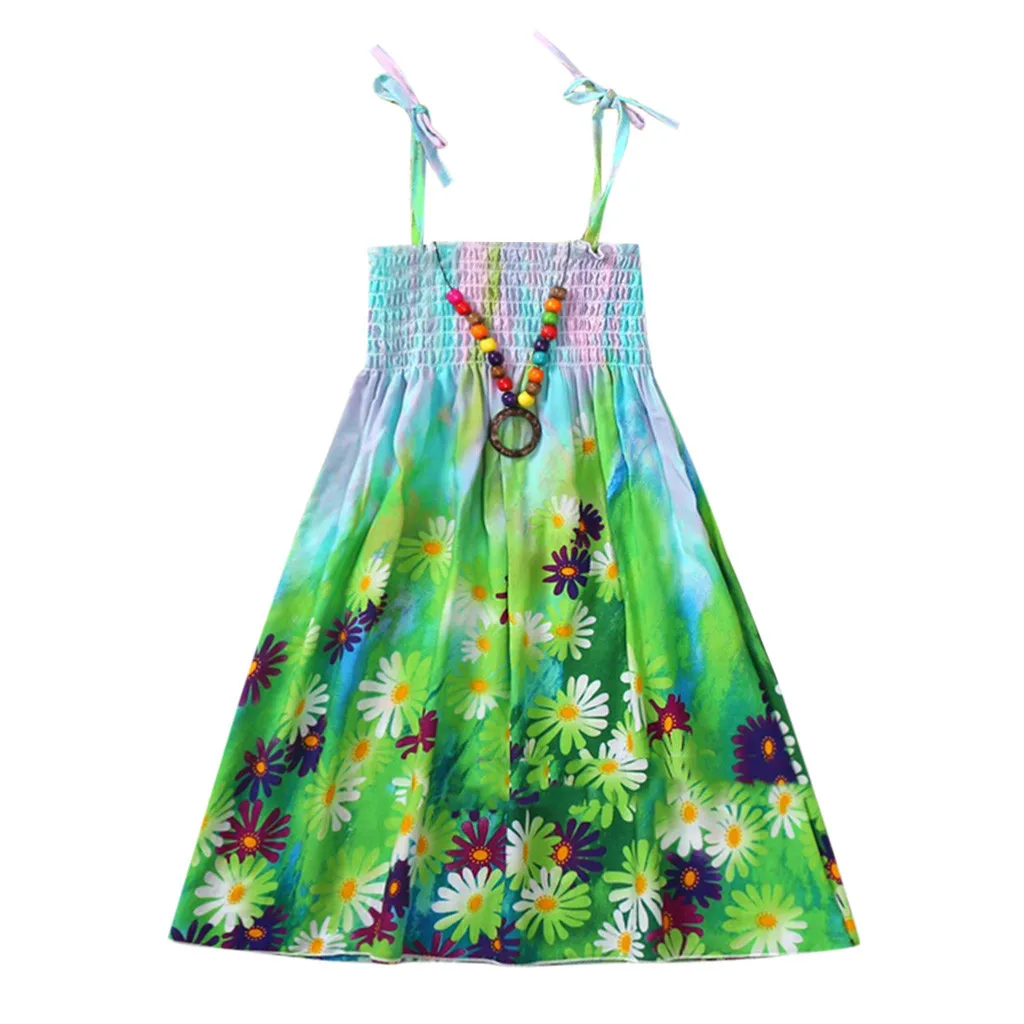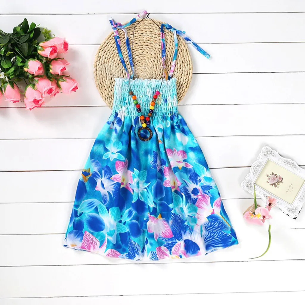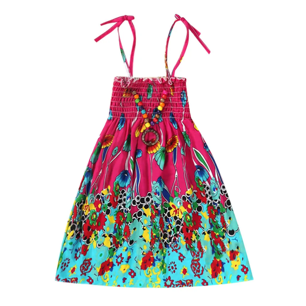 Для новорожденных детей Одежда для девочек, богемное пляжное платье на бретелях с цветочным принтом