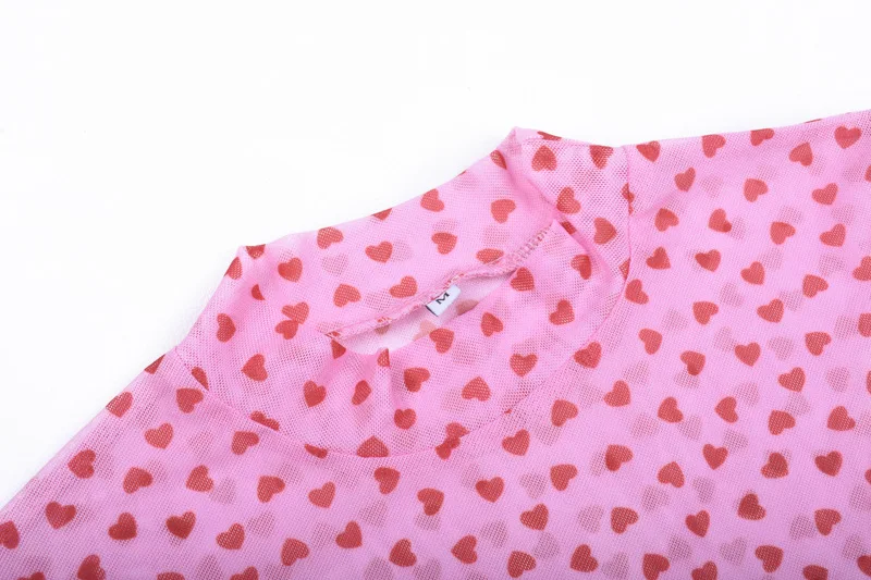 Женская прозрачная Сетчатая футболка с коротким рукавом и круглым вырезом с принтом в виде сердца
