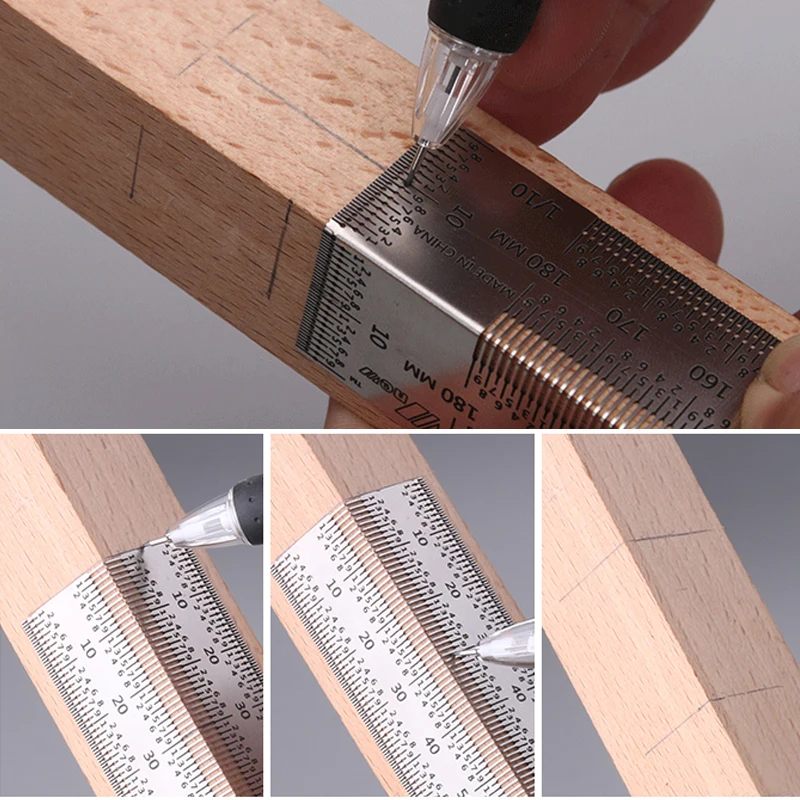 Деревообрабатывающая линейка используется для маркировки линий на квадратных заготовках, специально подобранных с откидывающейся электрической циркулярной пилой, чтобы решить проблему измерения размеров в эксплуатации