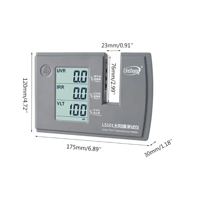 LS101 Способен измерять и отображать УФ-излучение, ИК-излучение и видимое значение передачи на светильник одновременно. Этот счетчик представляет собой автономный светильник и самокалибровку. Нет необходимости в ручном регулировании. Пользователям нужно только подключить источник питания, включить переключатель и поместить солнечную пленку в слот. Полученные данные производительности будут отображаться на интерфейсе дисплея.