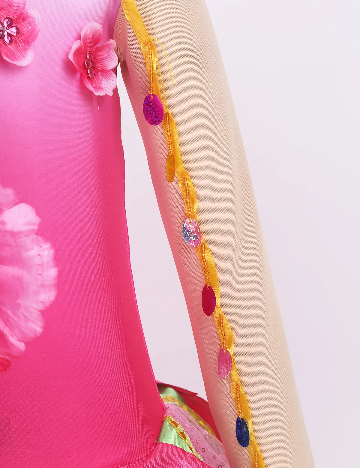 Наряд изготовлен из полиэстера, пайеток и спандекса, ручная стирка.
