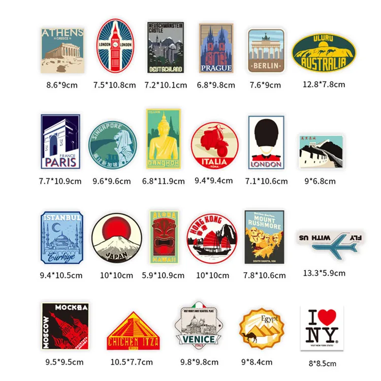 25 шт./компл. наклейки для путешествий по всему миру водонепроницаемые ПВХ знаковые строительные наклейки на холодильник кувшин багаж журнал украшения