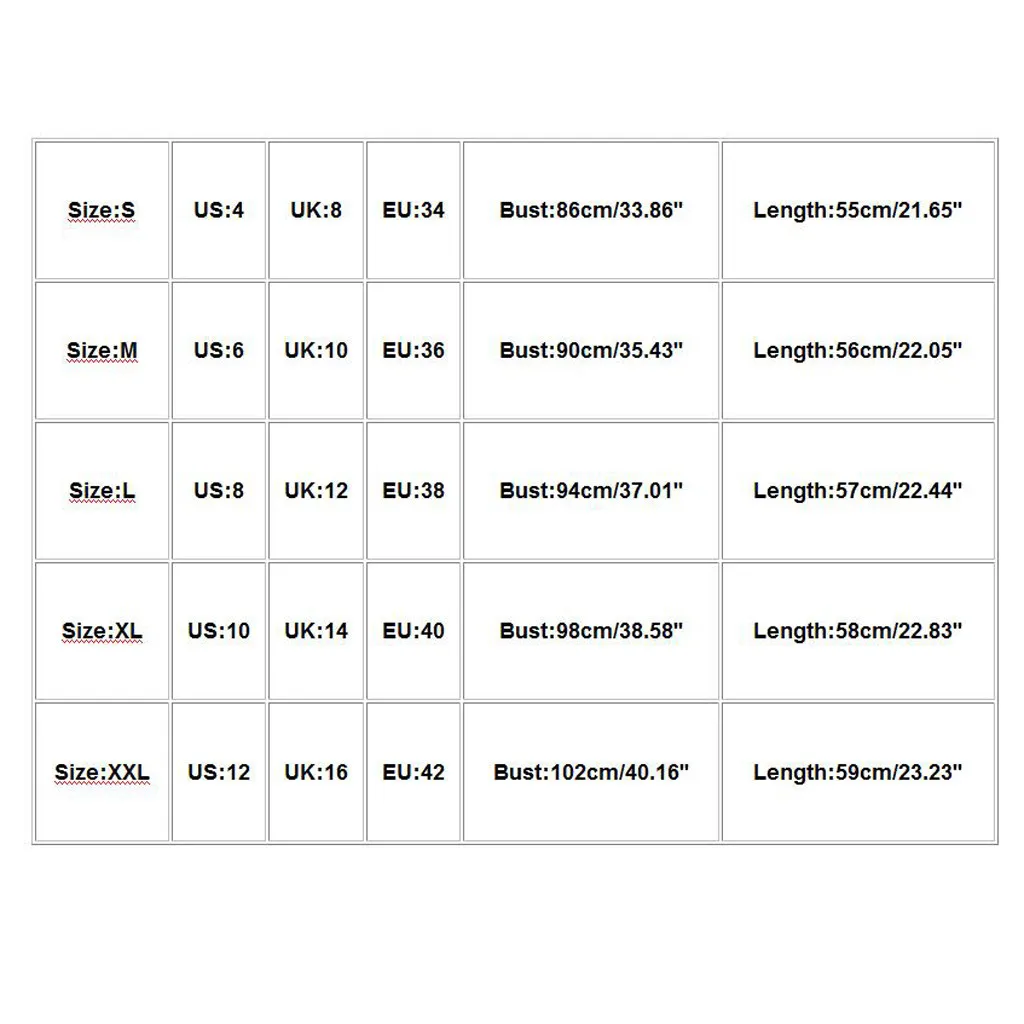 Размеры Свяжитесь с нами Великобритания ЕС Обхват груди Длина S 4 8 34 86 см/33,86'' 55 см/21,65'' М 6 10 36 90 см/35,43'' 56 см/22,05'' L 8 12 38 94 см/37,01'' 57 см/22,44'' XL 10 14 40 98 см/38,58'' 58 см/22,83'' XXL 12 16 42 102 см/40,16'' 59 см/23,23''