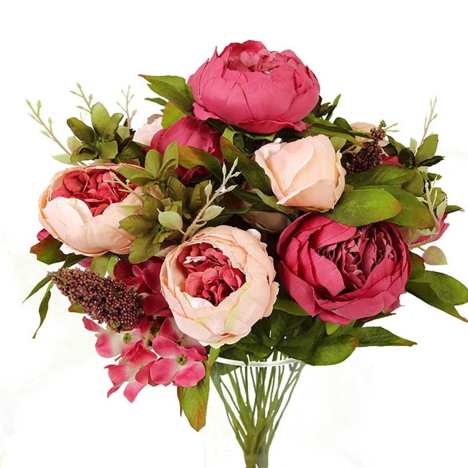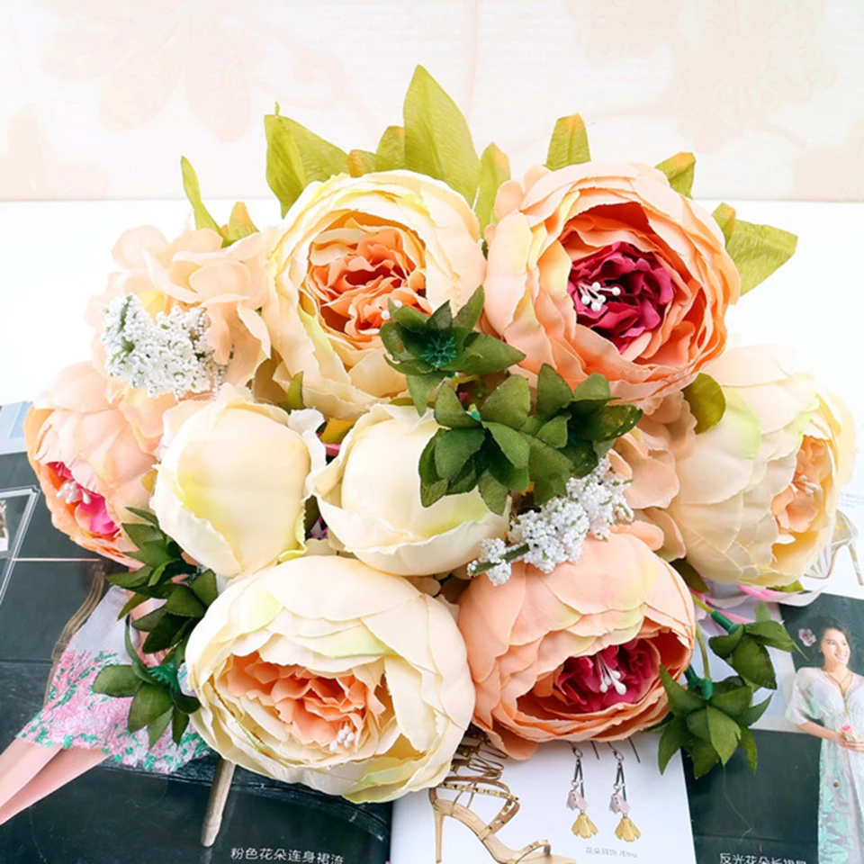 13 голов 50 см розовый Искусственный Пион из шелка цветы большой букет для свадебной вечеринки дома Новогоднее украшение шелковые цветы для дома Декор