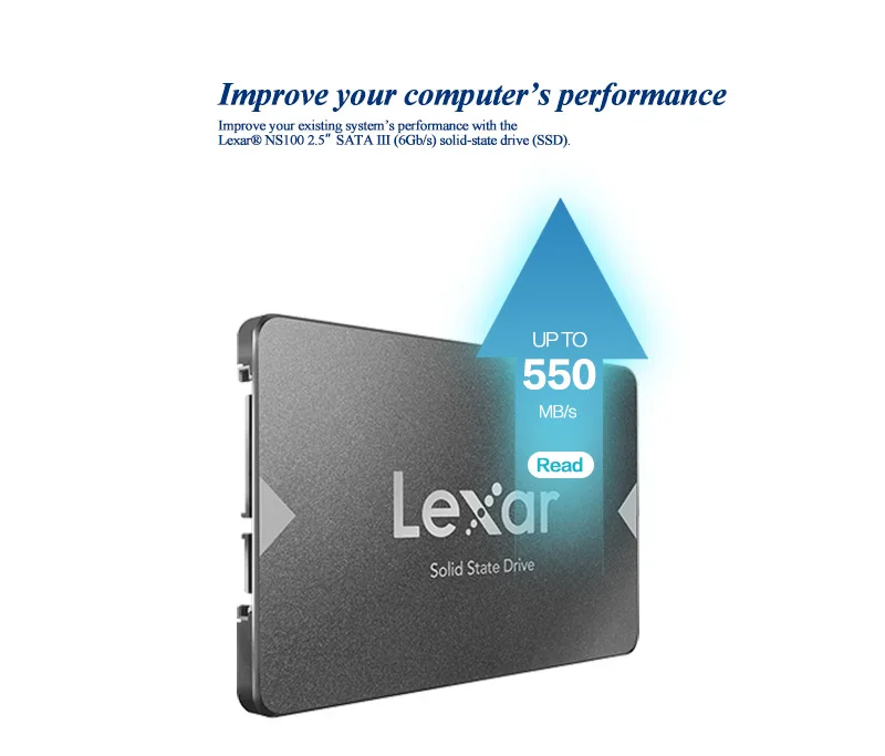 Особенности 1. Высокое качество: Lexar SSD SATA III 128 ГБ 256 ГБ 512 ГБ 1 ТБ Внутренний твердотельный диск NS100 2,5 дюйма для ноутбука. 2. Высокая скорость: по сравнению с оригинальным механическим жестким диском скорость загрузки увеличивается примерно на 200%. 3. Множество емкостей: модели с несколькими емкостями 128-1 ТБ на ваш выбор. 4. Широкая совместимость: подходит для ноутбука, ПК и сервера.