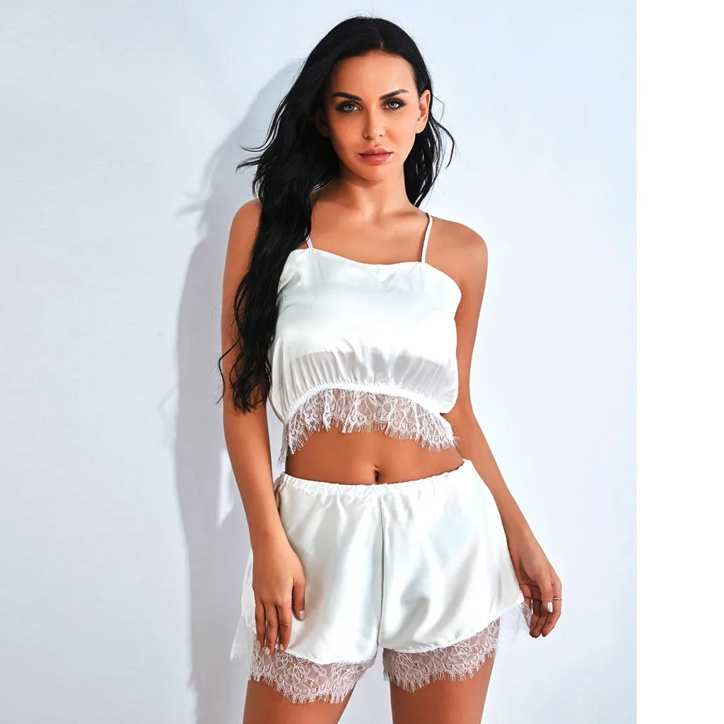 Новое Женское атласное кружевное шелковое нижнее белье, пижамы, белье, белый камзол шорты, комплект