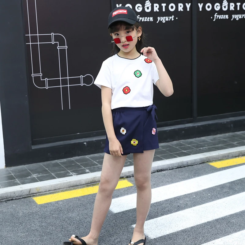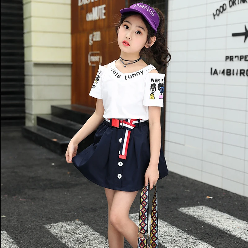 Одежда для девочек; Летняя модная футболка с короткими рукавами; Свитер; Короткая юбка; Брюки; Хлопковый комплект из двух предметов с принтом; Лидер продаж; Качественная одежда