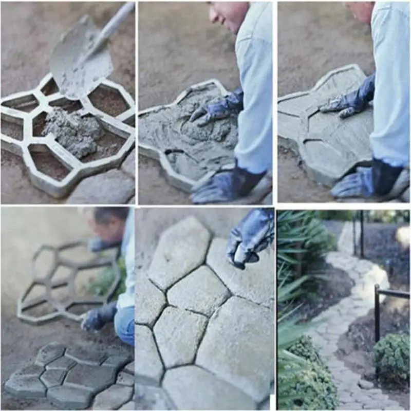 4. Вылейте свой собственный цементный кирпич, камень или шифер в каменную форму сада.