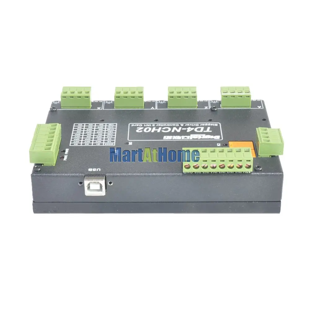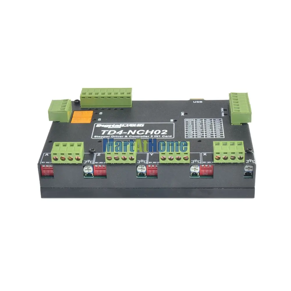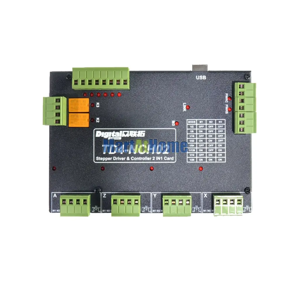 Распределительный щит на 5 Предел сигнала/происхождения сигнала с мультиплексированием с анод изолированный обычные цифровой входной интерфейс; 2 Релейные выходы; 1 Скорость вращения шпинделя и выход переключателя; Интегрированные 4 драйвера шагового двигателя, Одноканальный выход импульсного управления до 200 кГц; Можно подключить к шаговому мотору напрямую. Драйвер шагового двигателя использует специальный чип драйвера Sanyo 128 subdivision 4A с стабильной производительностью. Конфигурация по умолчанию составляет 32 блока; Поддержка одноосевой ручной пробежки и связи работы ключей панели; Поддерживает быструю работу в указанном положении; Автономное управление, полный контроль гравировального Станка без компьютера.