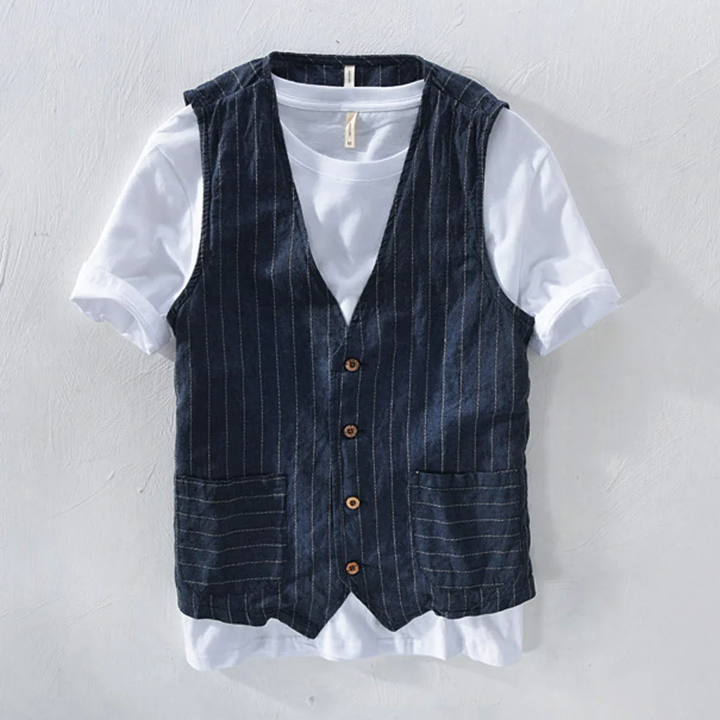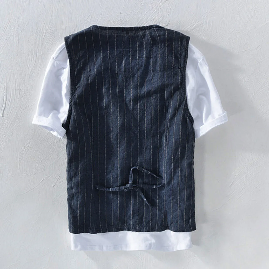 Летняя мужская Повседневная мода дикий полосатый топ на бретелях куртка Топ Блузка