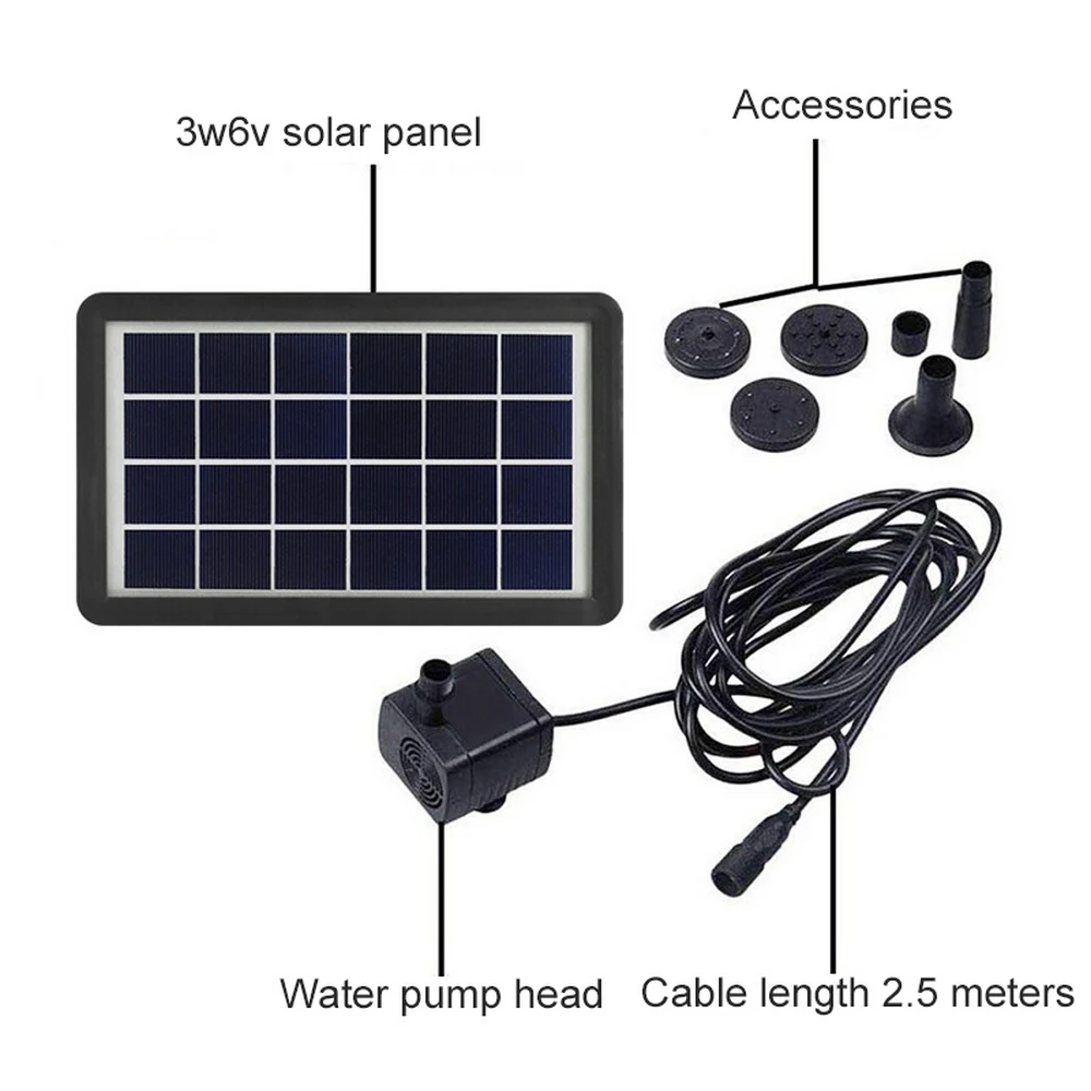 Продукт фиксируется в месте, где солнце может быть непосредственно подвержено воздействию. Водяной насос установлен с соплом для размещения воды. Когда солнце светит в течение дня, водяной насос можно управлять распылением воды.