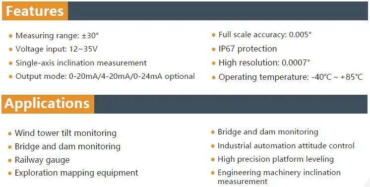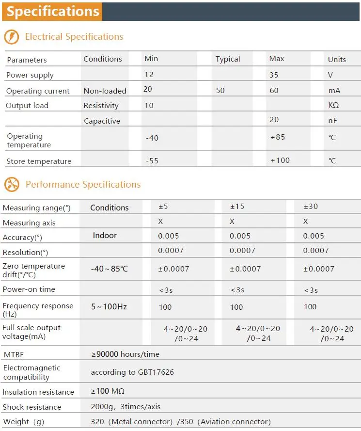 (1) Диапазон по умолчанию составляет ± 30 °, но мы можем установить любой другой диапазон (± 1 °,± 2 ° ...... ± 29 °) для вас перед поставкой. Если вы также хотите изменить диапазон самостоятельно, мы можем предоставить Вам бесплатное программное обеспечение для отладки. И мы можем поддерживать вас удаленно TeamViewer, если вам нужна помощь. (2) Мы поддерживаем изготовление на заказ, включая логотип. Поэтому, если вам нужно, пожалуйста, свяжитесь с нами.