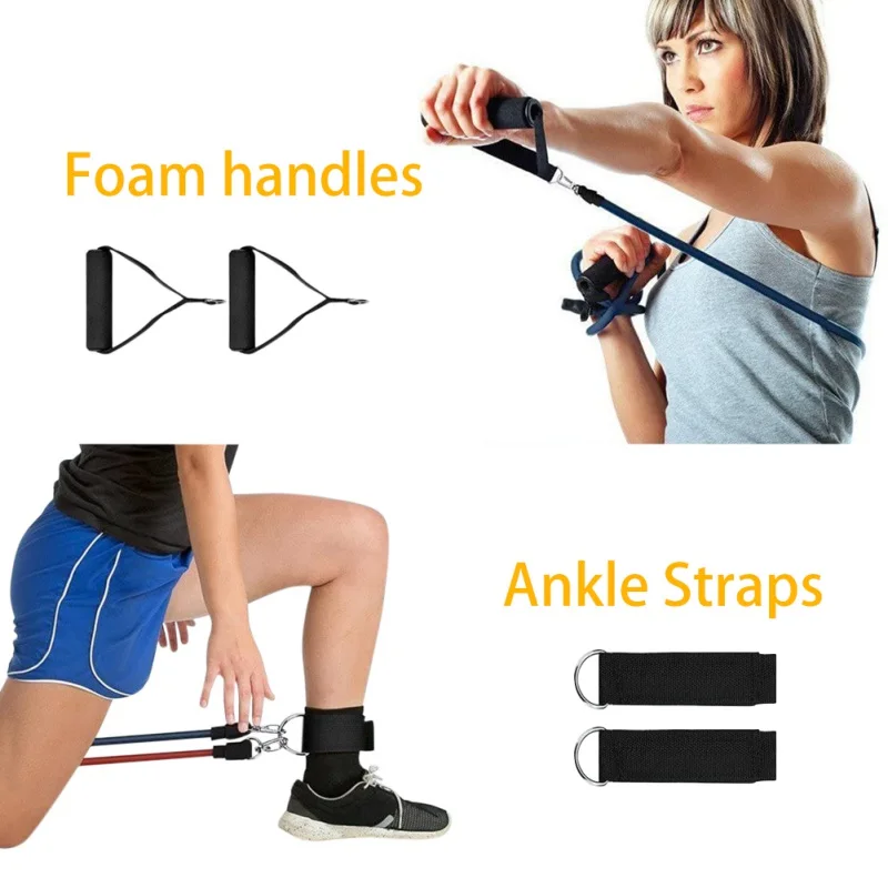 [Удобный и долговечный] наш набор резистивных лент использует высококачественный натуральный латекс, который является экологически чистым, прочным и высокоэластичным. Предотвращает внезапное поломку и деформацию ремня после более чем 30000 регулярных растяжек. Высококачественные материалы, используемые в ремешках на лодыжках, обеспечивают больший комфорт. Усиленные пряжки и дверные якори дополняют фитнес-ремень.