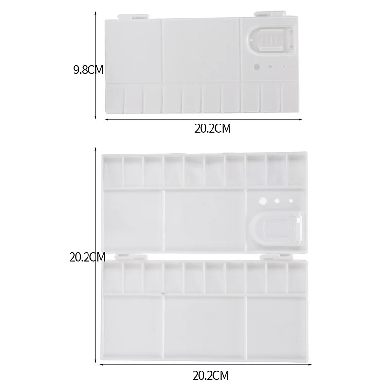 Прямоугольная форма легко очищает белую цветную пластиковую палитру с 20 меньшими наклонными скважинами и 5 Большими скважинами для удержания и смешивания цветов.