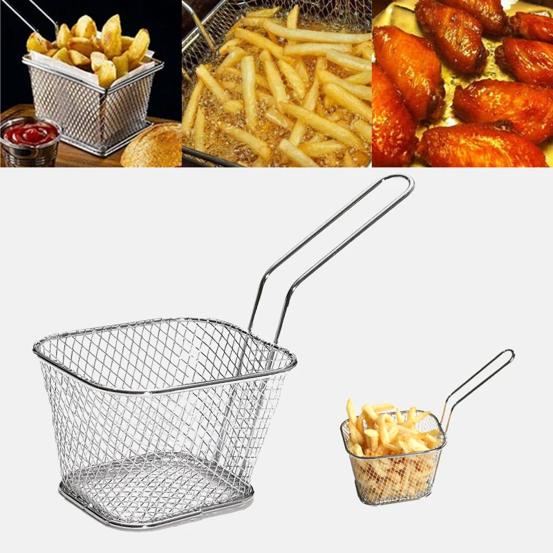 Provide Dropshipping Features: It is instant flexible essential kitchen helper. Ideal for presenting food to your family or guests. Perfect to control portion sizes and would be ideal for home, bar, cafes and restaurants. Specially designed handles stay cool to the touch. Great for dinner parties when serving chips etc. Specifications: Material: stainless steel Color: silver Size: 10.5*8.5*6.5cm Handle length: 8.5cm Package Include: 1 x French Fries Basket Notes: 1. Due to the difference between different monitors, the picture may not reflect the actual color of the item. We guarantee the style is the same as shown in the pictures. 2. Due to personal measurement technique is different, there may be 1-3 cm error of the physical.Thank you!