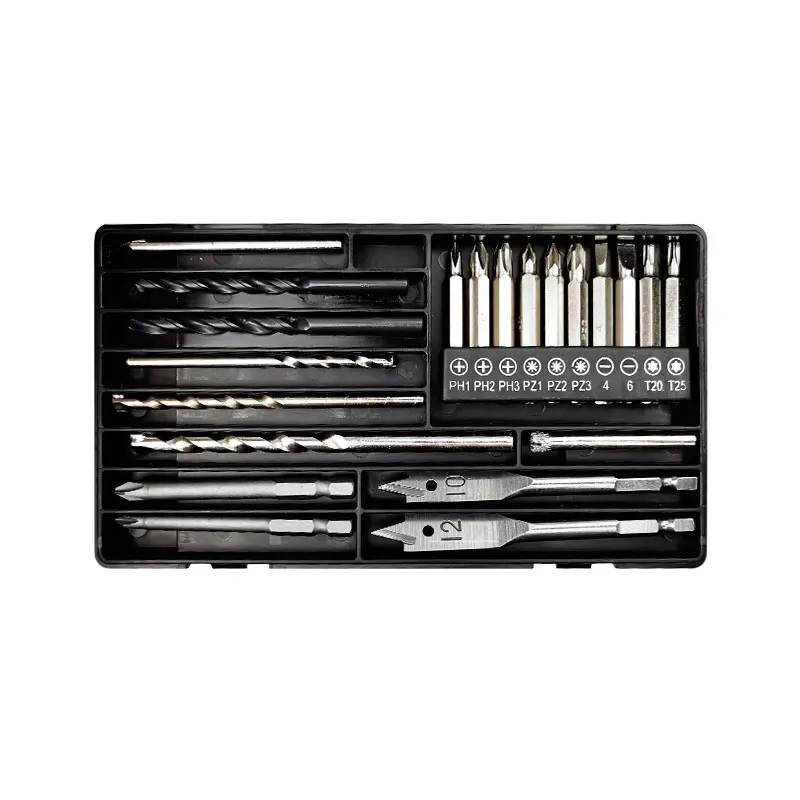 Набор сверл используется для бытовой техники, такой как телевизор, кондиционеры, вентиляторы, холодильник, ремонт автомобилей и так далее. Наборы инструментов для ремонта оснащены ящиком для хранения, изготовленным из материала PP, который устойчив к ударам. Пространство для хранения разумно спроектировано, расположение и размер аксессуаров являются последовательными, и части не легко отвалиться.