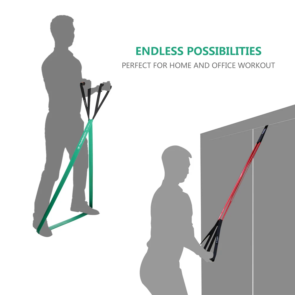 Набор лент TOMSHOO Pull Up включает в себя 5 лент для упражнений разных цветов и натяжения, которые позволяют использовать одно или несколько полос, чтобы бросить вызов различным уровням и достичь более высоких целей. С дверным якорем и ручками вы можете попробовать более интересные тренировки с помощью резинок сопротивления. Этот комплект компактно упакован в сумку для переноски, легкий и портативный, очень удобный для выполнения тренировочных процедур, где бы вы ни находились.