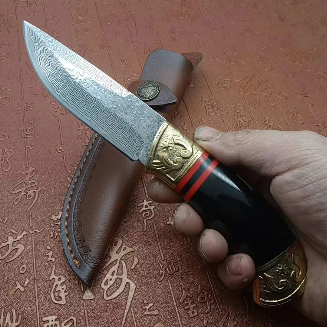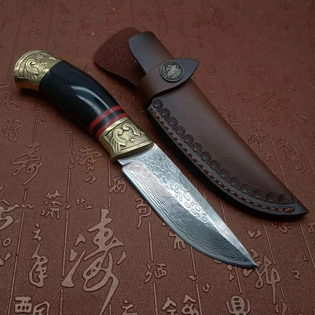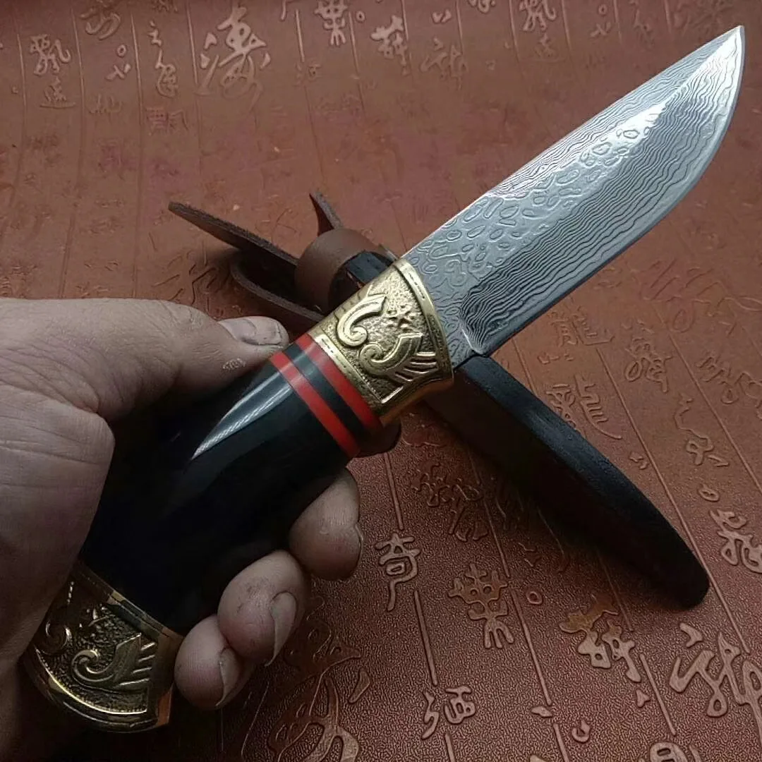 Ручная работа, кованый 60 HRC VG10 Дамасская сталь, прямой фиксированный нож, охотничьи ножи, уличный нож высокой твердости, ножи для выживания