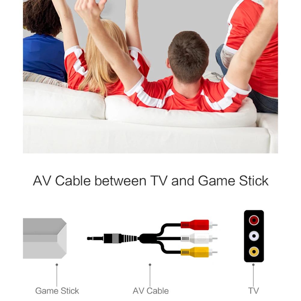 * 8. Вам нужно всего лишь подключить игровую консоль к интерфейсу телевизора и USB-кабелю передачи данных к консоли. Источник телевизора может быть настроен на HD или av-канал, чтобы отобразить экран списка игр на телевизоре. Поместите ручку в батарею, чтобы дистанционно управлять, подключать и играть, простой и элегантный, легкий в управлении.