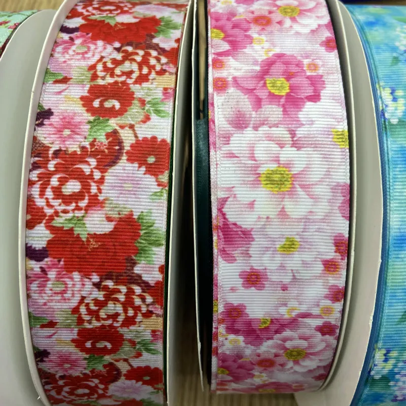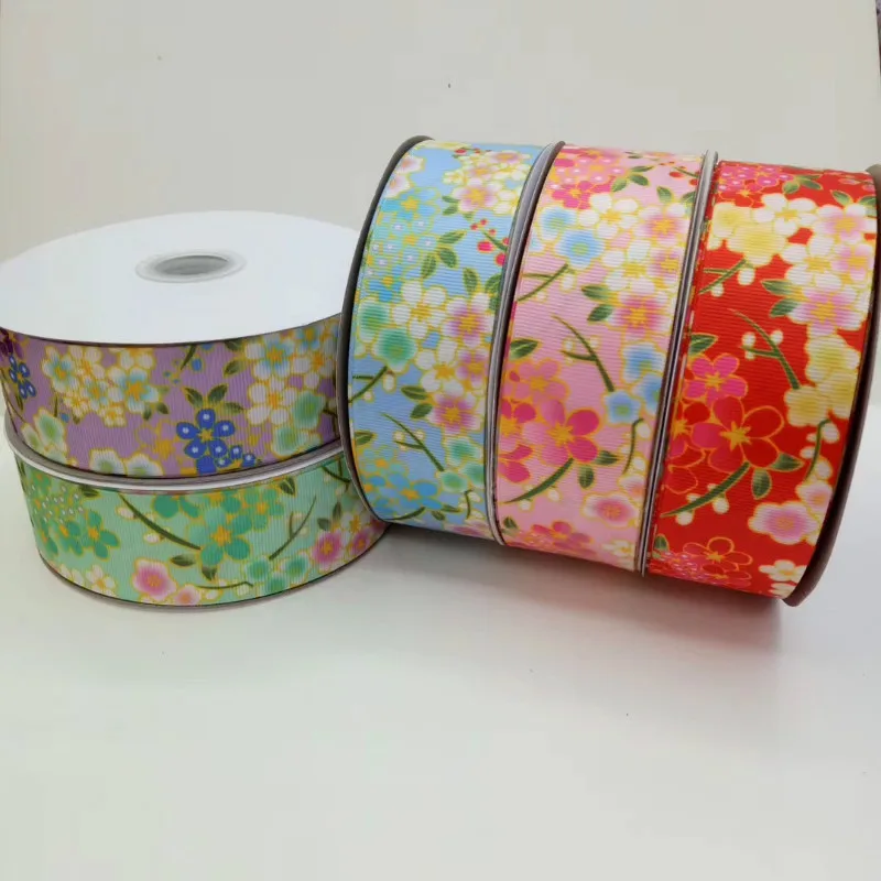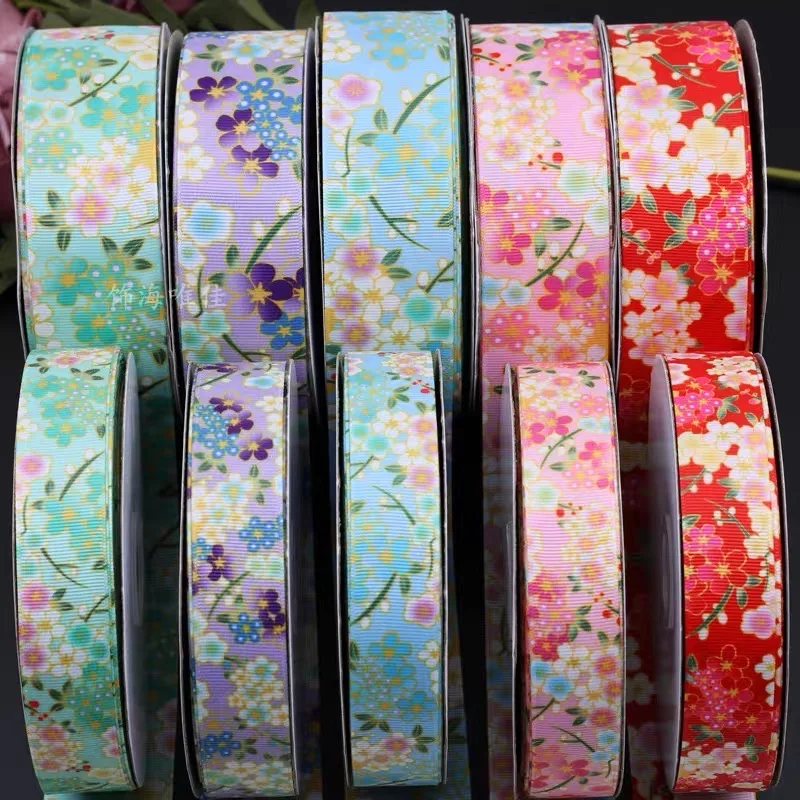 Наименование: Лента в крупный рубчик с японским цветочным принтом, лента Сакура вишни 25 38 мм 50 ярдов/партия, подарочная упаковка, бант для волос, аксессуары для ошейников