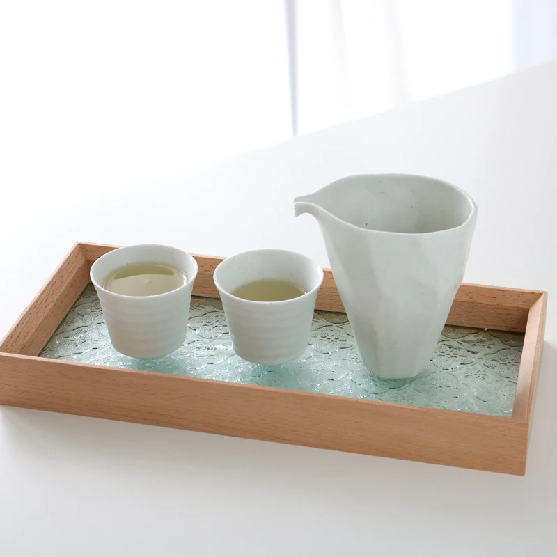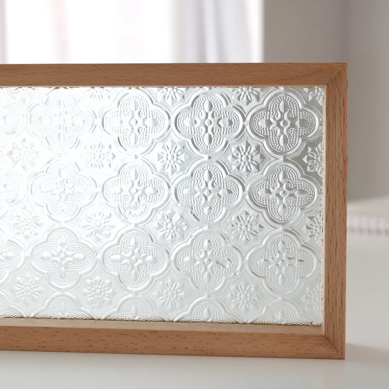 Size Embossed Glass Solid Wood Tray(cm): 30x14x4 Mateiral: beech+glass Solid wood surface treatment: manual carving and polishing, environmental protection wood wax painting Note: Due to solid wood splicing process, in daily use and maintenance, dont wash or soak into water, be sure to wipe the excess water in time, keep the tray dry