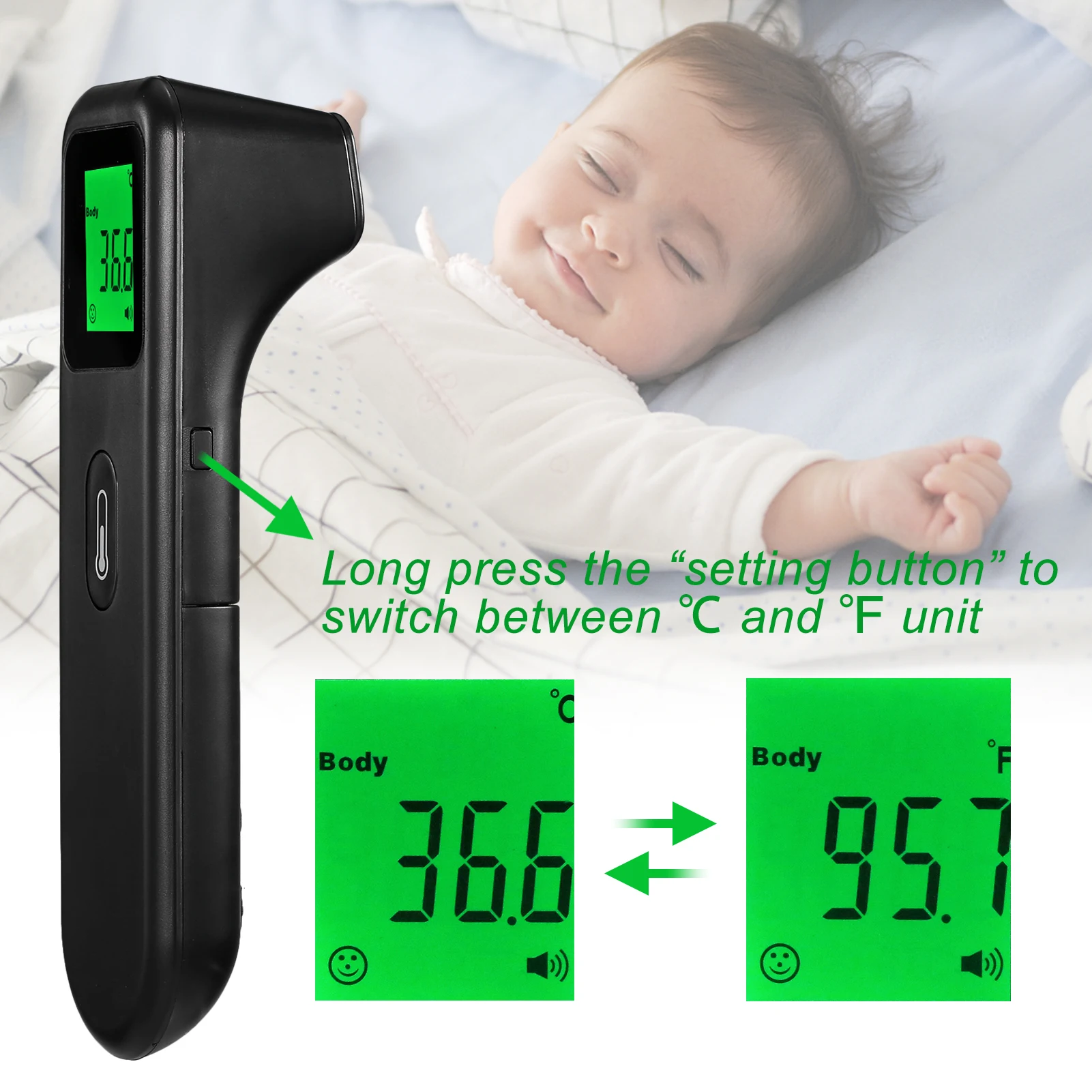 Измерение температуры человеческого тела:Этот инфракрасный термометр для лба подходит для всех возрастов, младенцев, взрослых и пожилых людей, что обеспечивает самый простой и практичный способ измерения температуры.