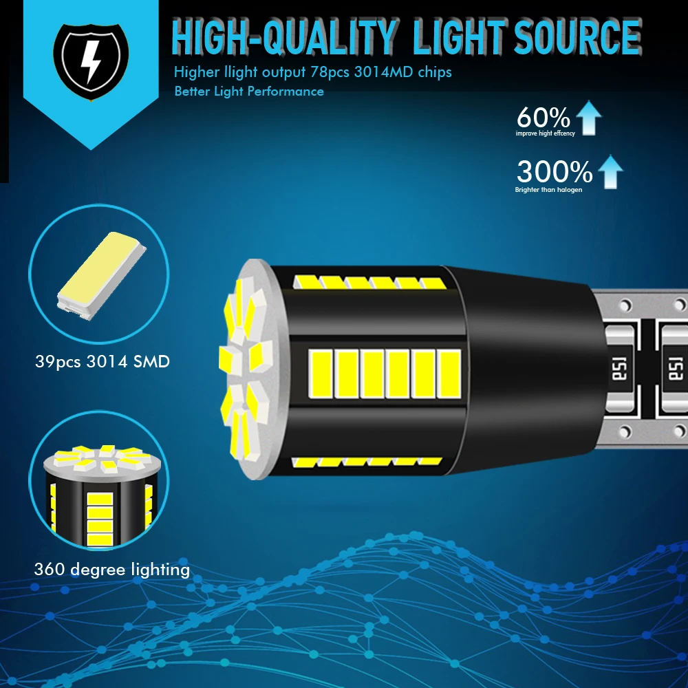 1 Total 39 Pieces 3014 SMD Chips 2 Standard T10 , 99% Close to Original Halogen Bulbs 3 Stable IC Driver , Canbusl Error Free , Fit 12V Cars