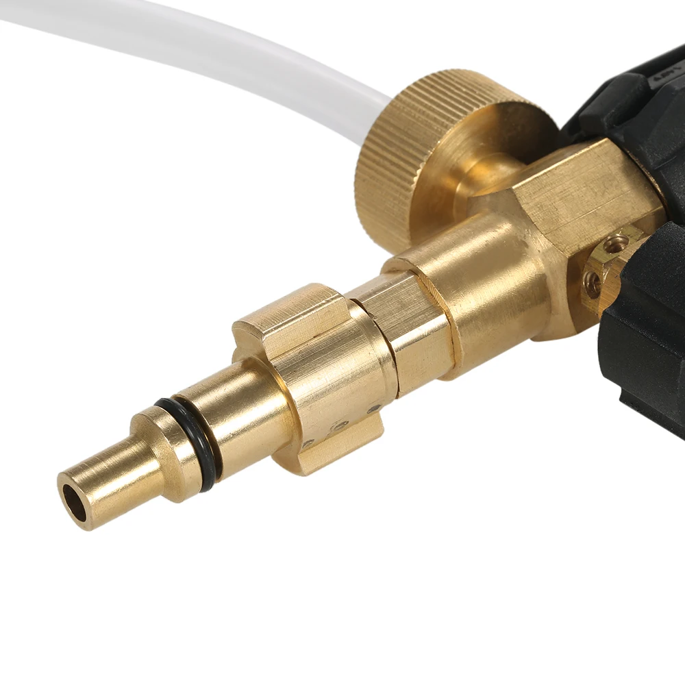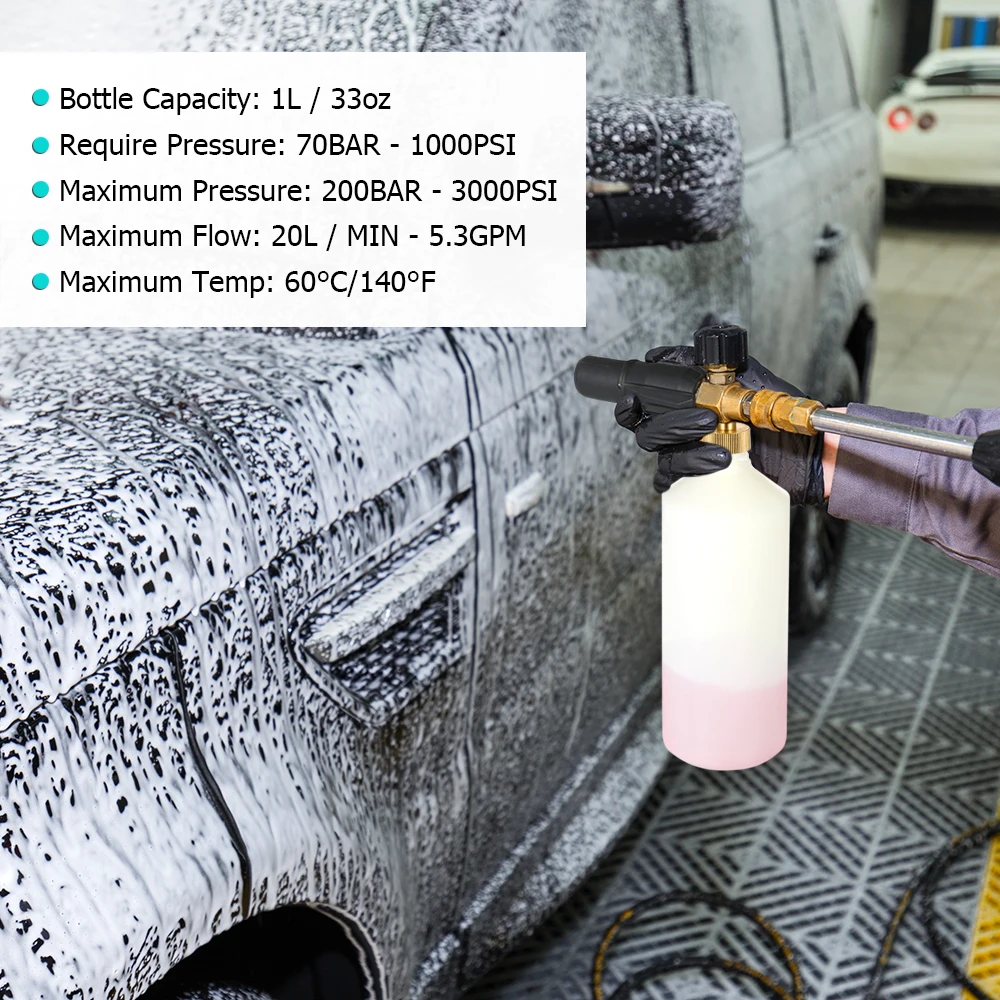 Он используется в качестве подходящего аксессуара для моек под давлением для очистки автомобиля, механического оборудования, полов, стен и т. Д. Он может быть подключен к пистолету на мойке под давлением.