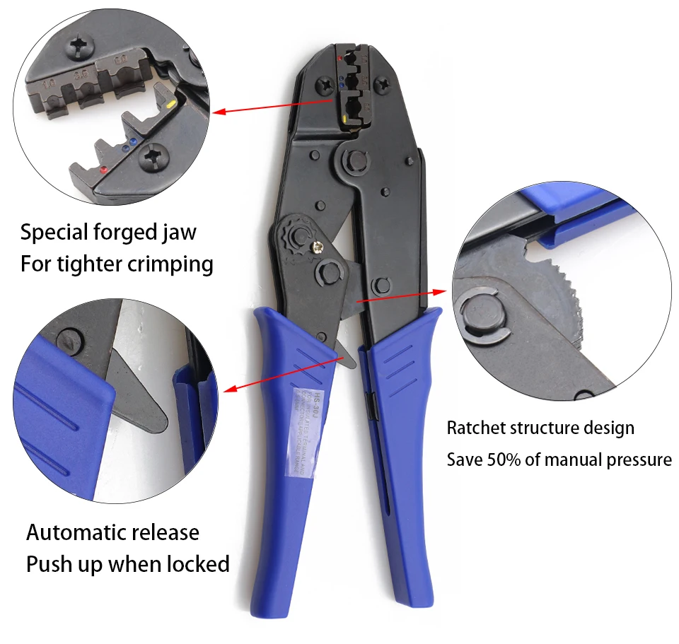 1. Компоненты трещотки Обжимные Инструменты изготовлены из специальной стали.