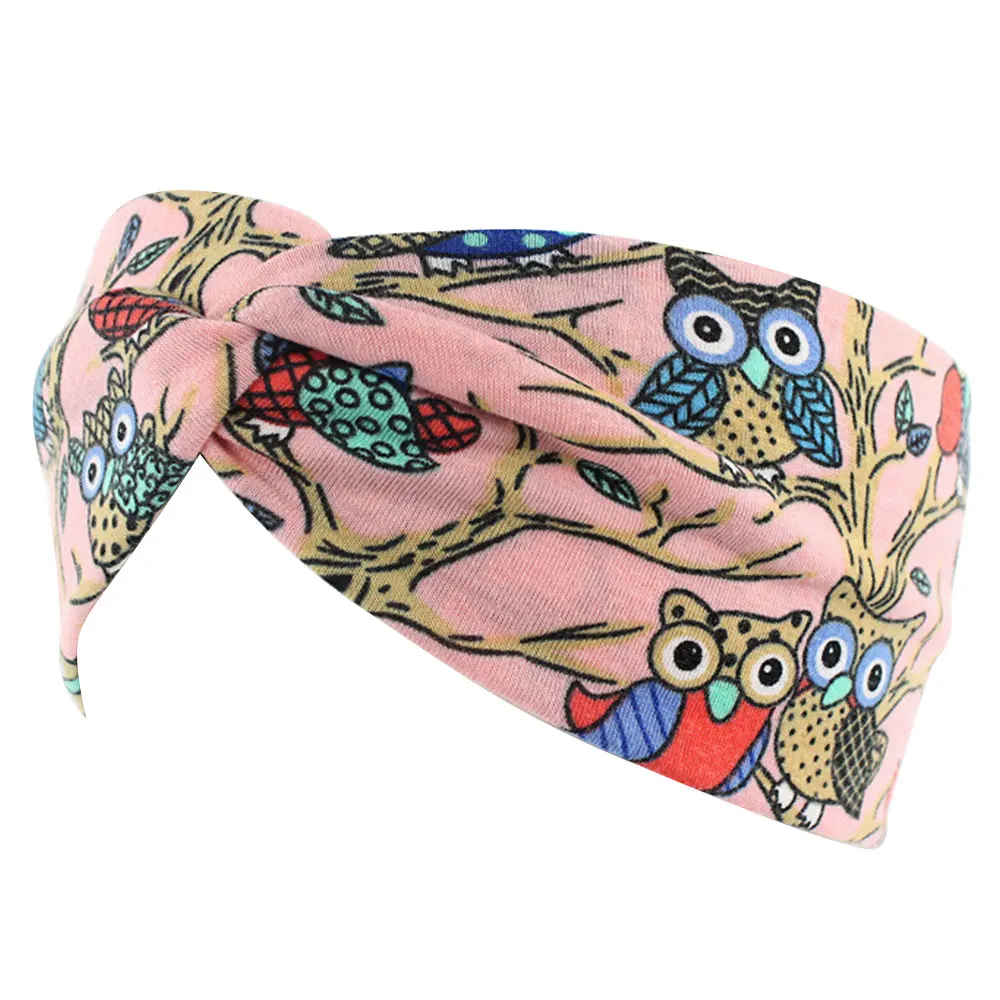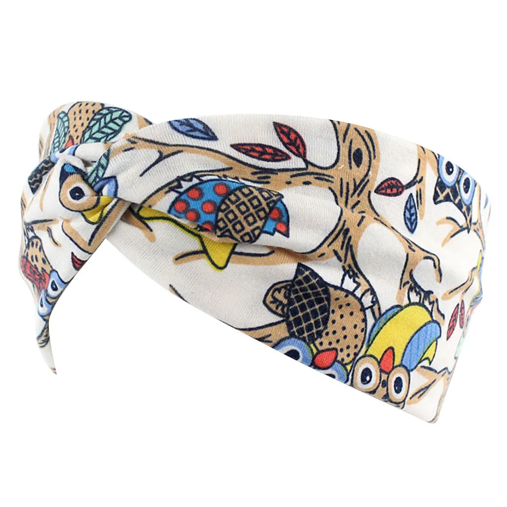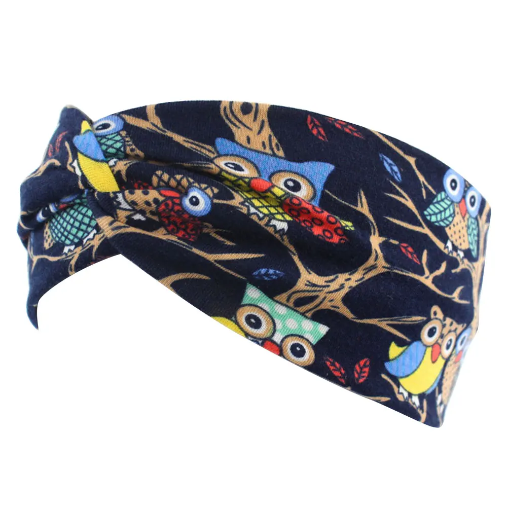 2 шт., хлопковые повязки с узлом с принтом совы для женщин, этнические, народные, с рисунком животных, повязки на голову, модные, эластичные, тюрбан, головные уборы