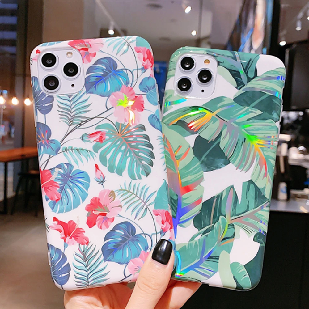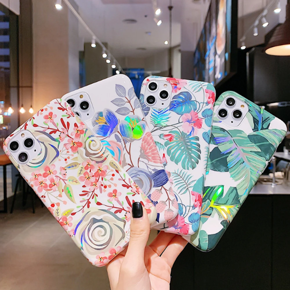 Мягкий лазерный цветочный чехол для телефона Apple iPhone 11 Pro Max XS Max XR X 7 8 6 6S Plus, задняя крышка с цветком