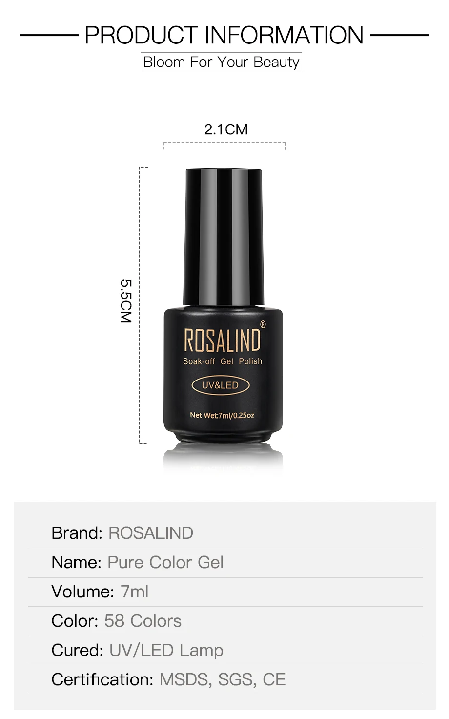 ROSALIND 7ml Soak Off Pure Color Nail Gel Bright For Nail Art Design LED/UV Lamp